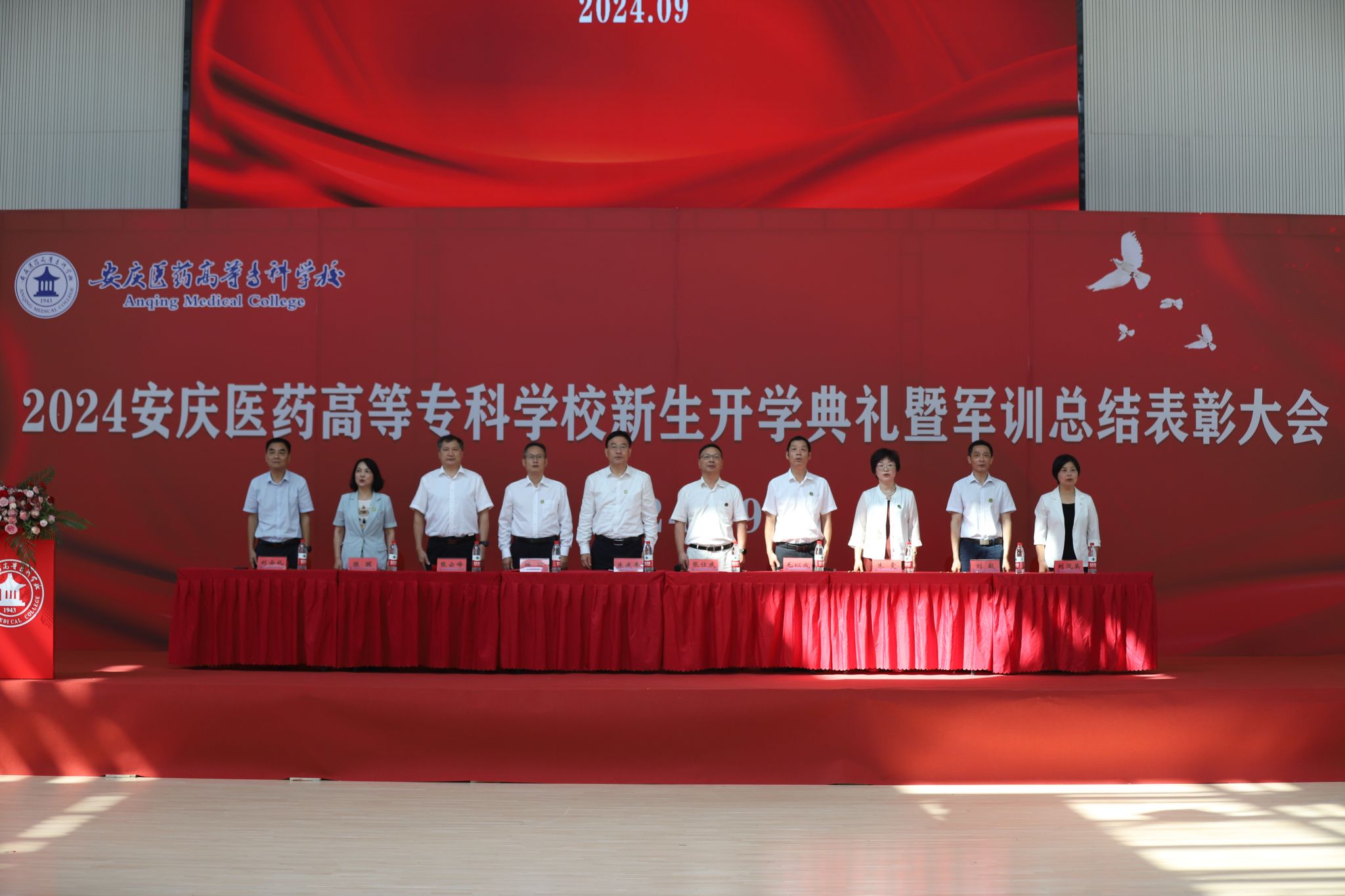 9月30日上午,今年会2024级新生开学典礼暨军训总结表彰大会在新落成的百花亭体育馆内隆重举行。校领导朱庆丰、张仕庆、陈燚、毛以成、朱雯、陈琪、刘毅,安庆市第一人民医院、安庆一一六医院、南京鼓楼医院集团安庆市石化医院、学校各部门负责同志、各二级学院党政领导、学管干部、2024级辅导员及3000余名新生出席大会。大会由校党委副书记张仕庆主持。