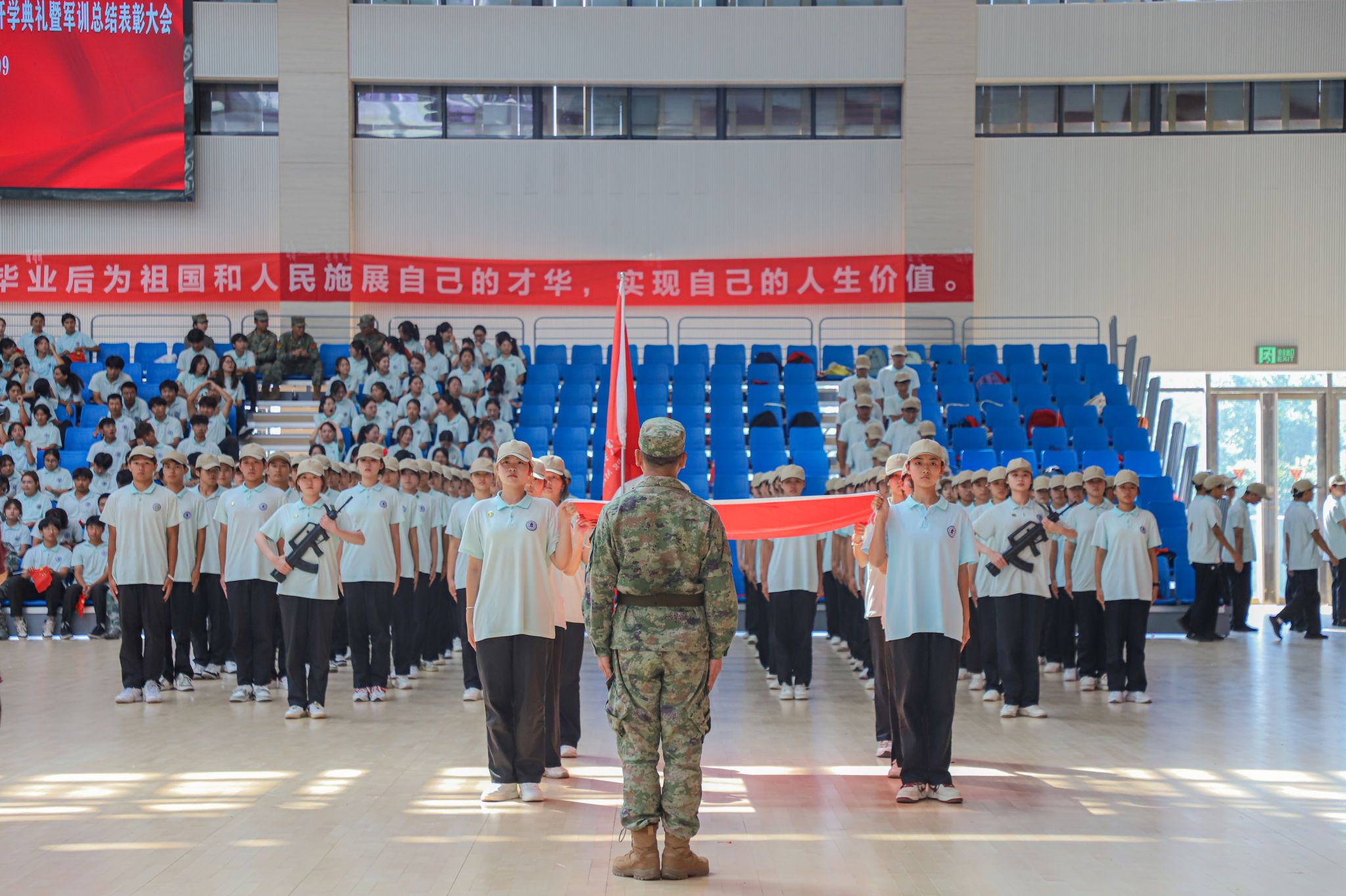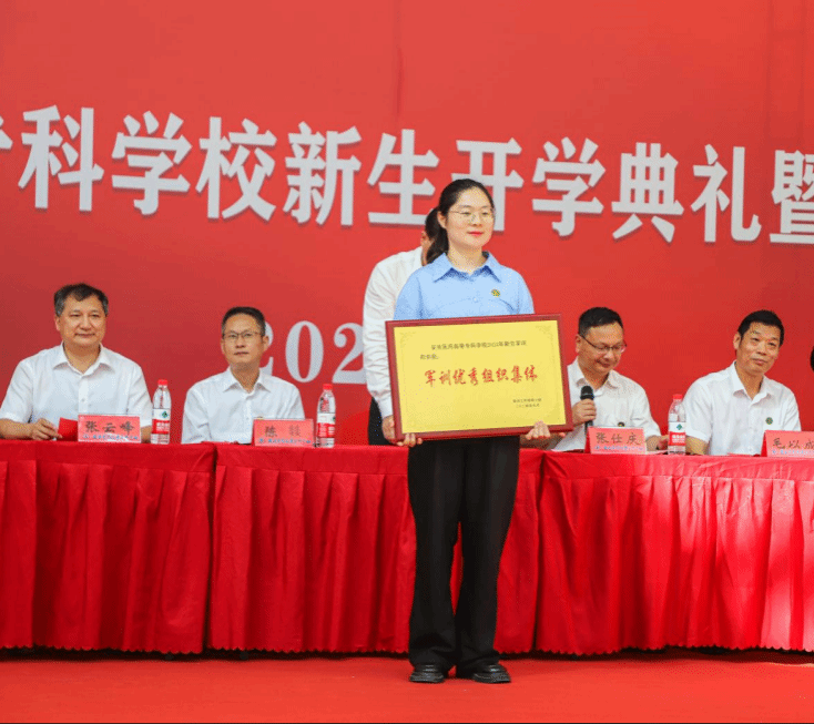 陈燚宣读了学校关于表彰2024级新生军训先进集体和个人的决定,校领导为军训优秀组织集体、军训优秀教官、军训优秀标兵等获奖单位和个人进行表彰