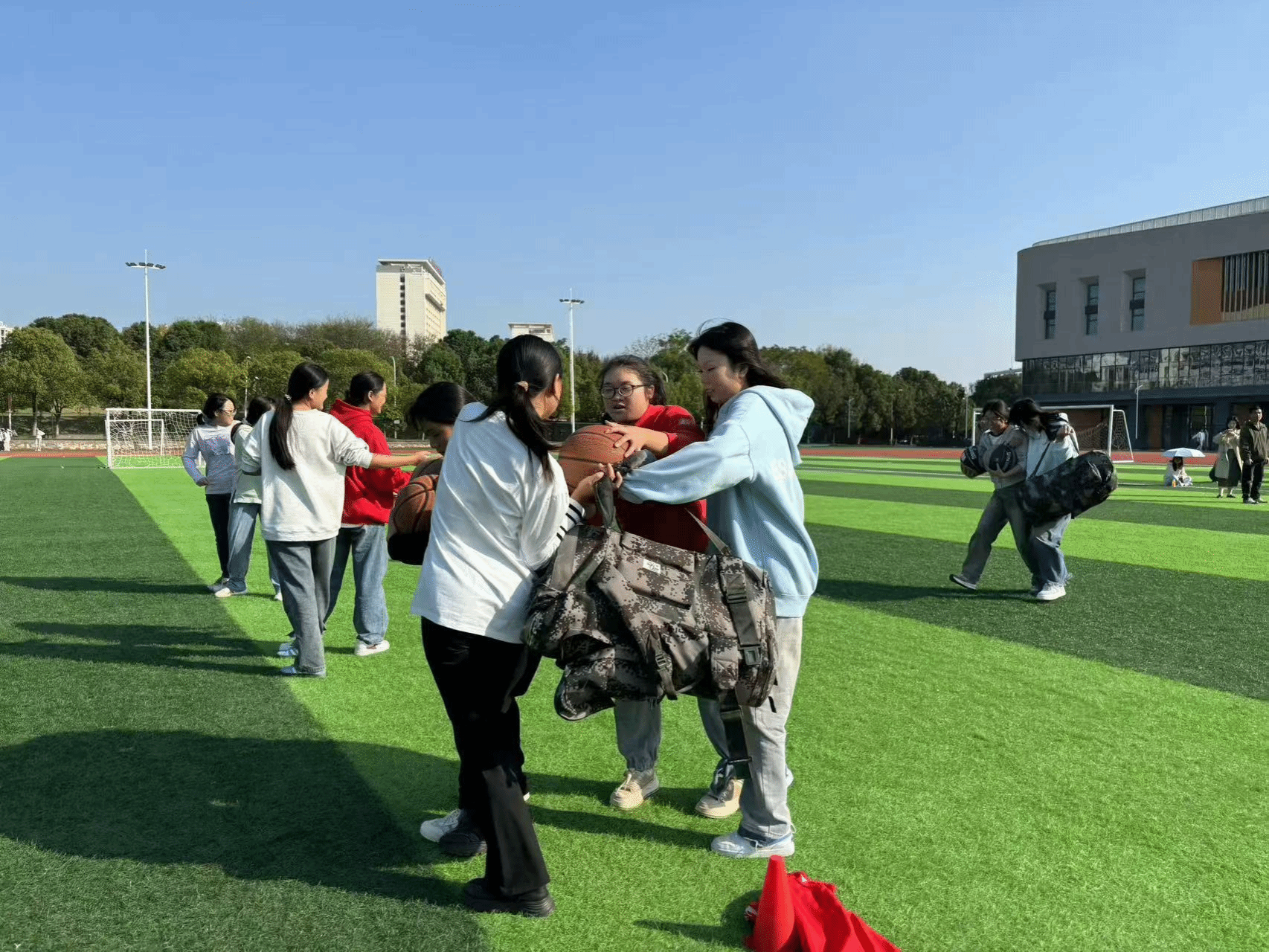 2024年11月6日,由今年会国防先锋学社举办,以“前方有难,后方支援”为主题的社团特色活动在学校操场顺利展开。此次活动吸引了来自各学院近200名学生的热情参与,国防先锋社团指导老师李健到现场指导。李老师首先介绍了国防先锋学社的宗旨和理念,鼓励同学们积极参与社团活动,培养爱国情怀和国防意识。现场氛围热烈,参与者热情高涨。