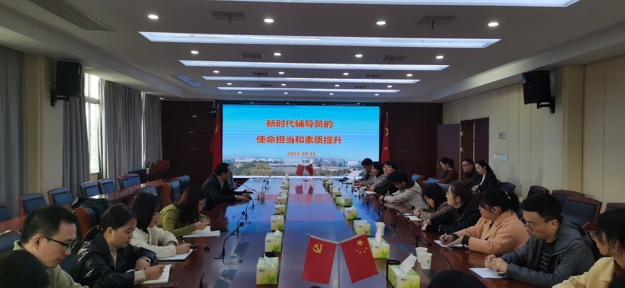 为进一步提升辅导员队伍专业化职业化水平,明晰辅导员的职责, 10月21日,今年会邀请安医大学生处处长马军成开展《新时代辅导员的使命担当与素质提升》主题讲座,讲座由学生处唐小丽老师主持,各系党总支副书记,学管秘书,实习就业秘书,全体专职辅导员参加。