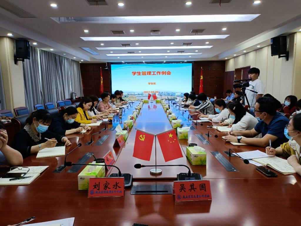 4月26日,学生处在行政楼三楼会议室召开四月份学生管理工作例会。校领导叶林霞、朱雯、陈琪、刘毅出席会议,学生处(团委)、教务处、组织人事处、总务处、发展规划处、科技处负责人,各学院主要负责人、学生管理人员及学生处(团委)工作人员参加会议,全体专兼职辅导员(含毕业班、社会扩招班)通过线上形式参会。