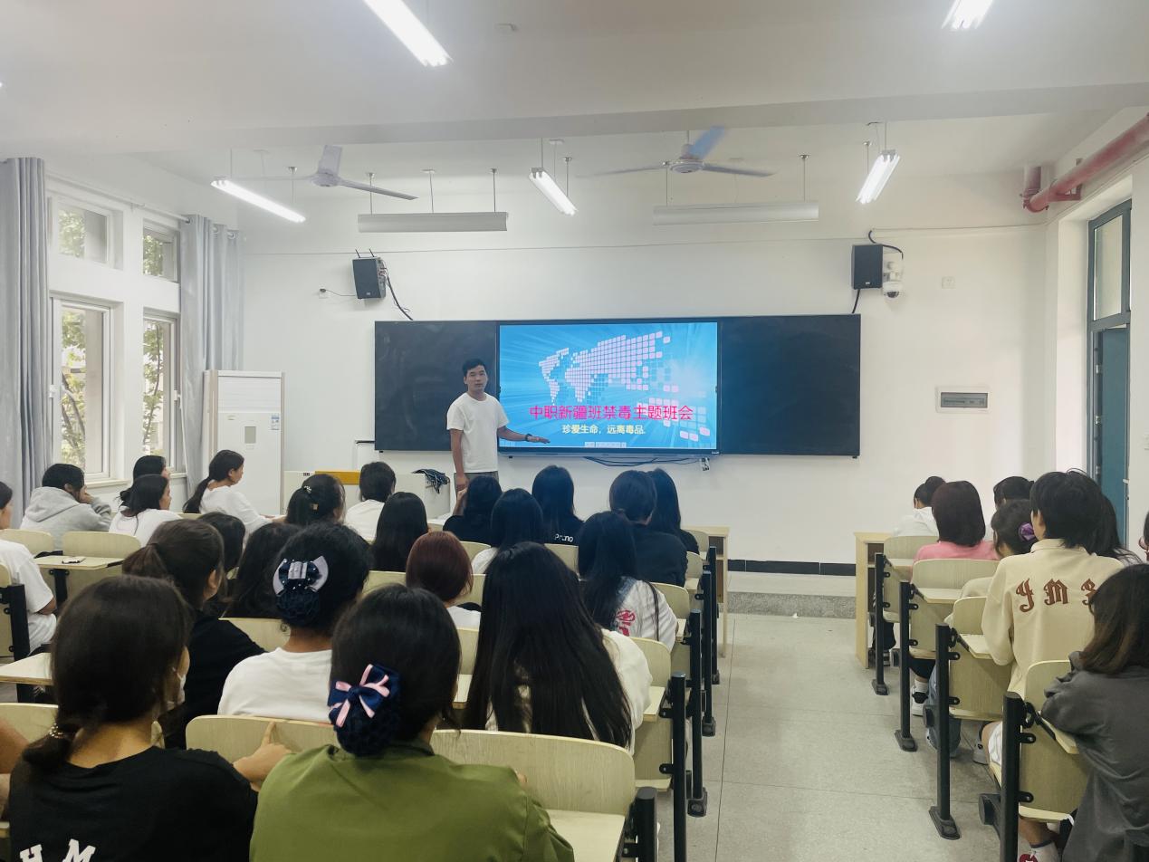 辅导员李健老师通过主题班会的形式向学生们讲解了毒品的基本知识、毒品的危害以及如何预防拒绝毒品等方面的内容,宣传国家有关禁毒的法律法规,要懂得珍爱生命,远离毒品。