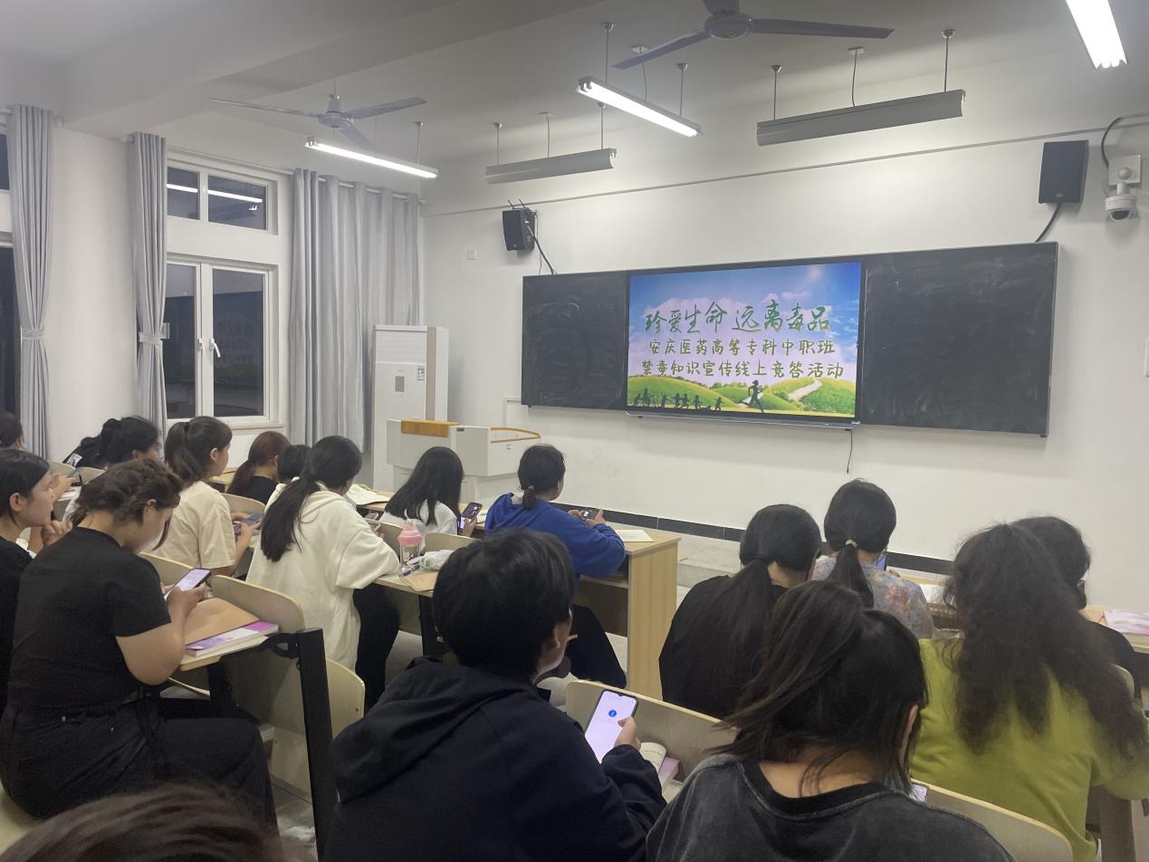 同学们利用晚自习的时间组织学生深入学习并开展禁毒知识竞赛,进一步加深今年会中职班学生对法律法规、毒情形势的了解,提高了学生识毒、防毒、拒毒的意识和能力,号召他们从自己做起、从小处着眼,积极投身到禁毒行动中来,争当禁毒宣传的排头兵。