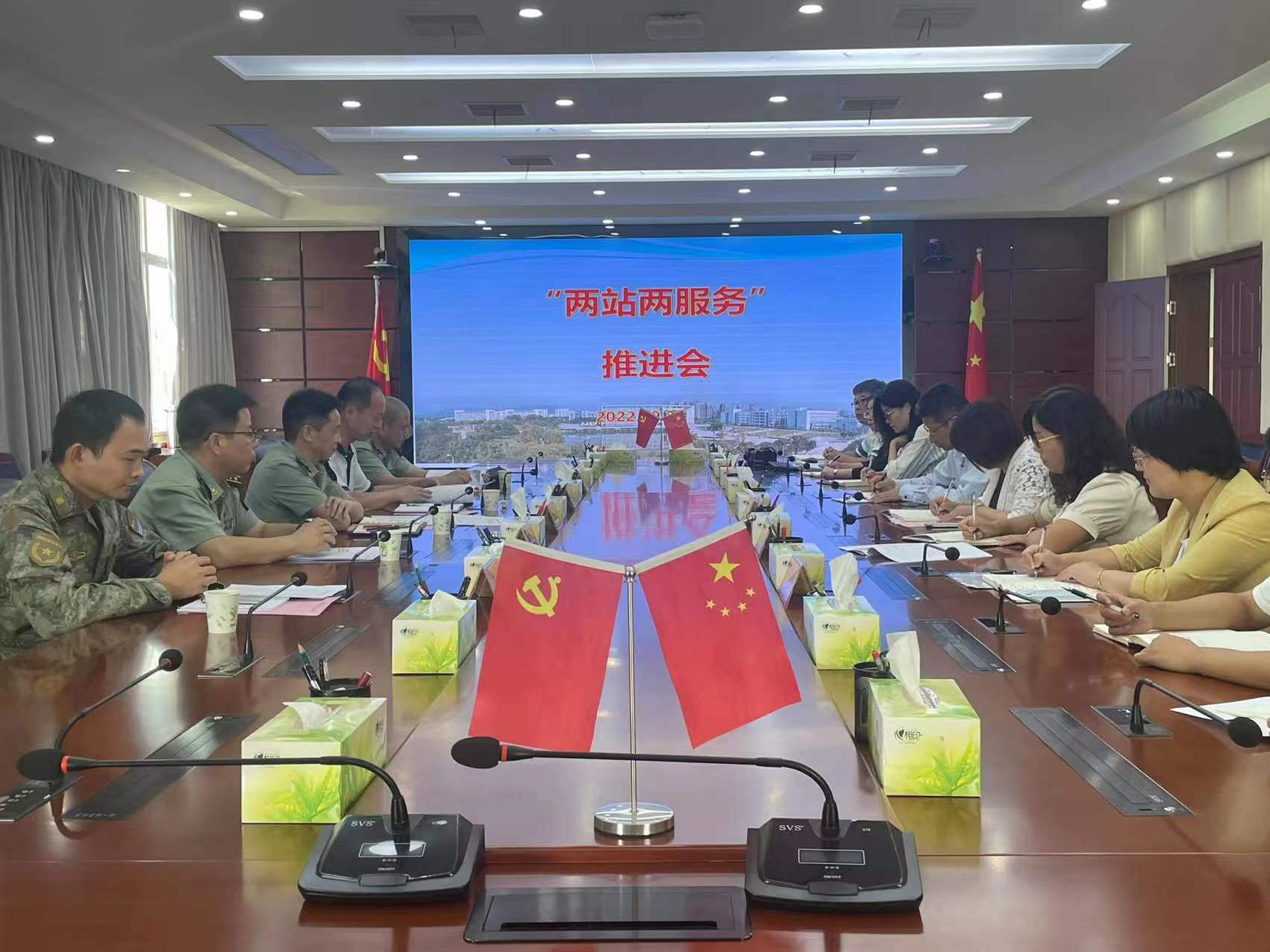 9月27日上午,安庆军分区动员处处长胡小龙来今年会调研“两站两服务”征兵工作站推进工作,安庆军分区国防动员处参谋朱金才、安庆市高教工委调研员吴宗亚、宜秀区人民武装部部长刘巨华、宜秀区人武部军事科参谋张泉等陪同参加。校长姚文兵、党委委员陈琪、学生处副处长唐小丽、学生处副处长马艳、征兵工作站副站长黄建斌以及各学院书记、征兵员参加调研,党委委员陈琪主持调研会。