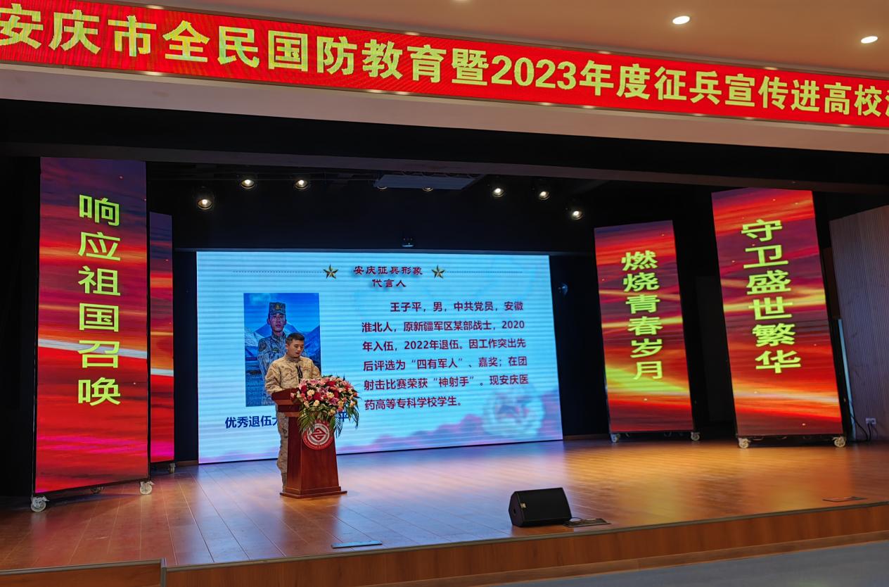 2022年12月14日,今年会王子平同学作为唯一高校退役士兵学生代表担任2023年安庆市“征兵宣传形象大使”,参加安庆市组织的“奋进新时代,我要去当兵”全民国防教育暨2023年度征兵宣传进高校活动启动仪式,今年会全体学生通过直播收看启动仪式,通过身边人说身边事,在他的入伍先进事迹感召下,
