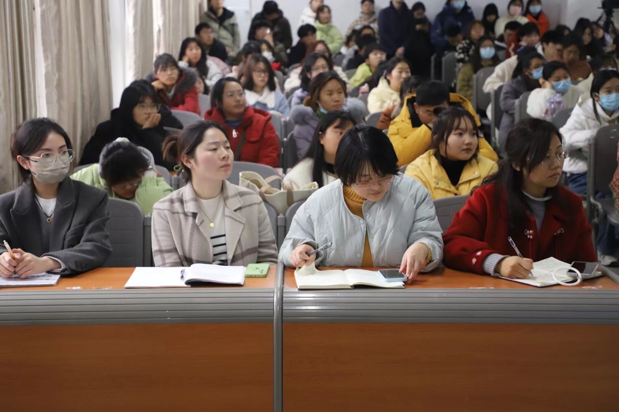 交流会现场座无虚席,同学们认真聆听