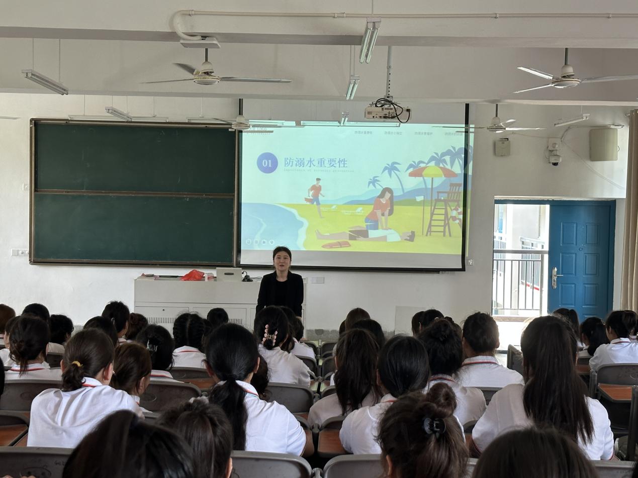 在主题班会课上,辅导员毛丽丹老师通过组织观看安全教育平台的防溺水专题教育视频让学生直观地了解易发生溺水事故的危险地带,利用防溺水课件对学生进行防溺水安全教育,告知学生什么是溺水,如何避免溺水,发生溺水时如何自救,遇见溺水者如何救助等知识,并郑重地讲述了防溺水的重要性。