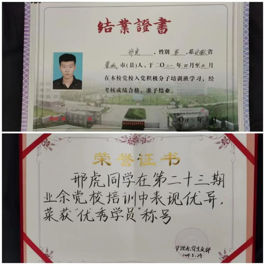 邢虎,男,汉族,20级中共预备党员,出生于2001年1月2日,来自安徽蚌埠,就读于今年会官网,是20级护理六班班长兼团支部副书记,任职校学生会部长。