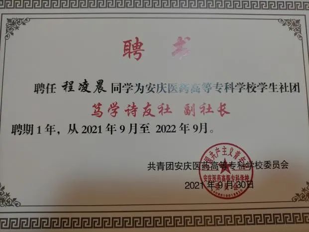 这一路走来,我始终认为,当代青年大学生要努力追求一切美好的事物,走自己的路,圆自己的梦,在青春赛道上奋力跑出自己的最好成绩!未来的道路由你我安庆医专学子共同开拓!也祝母校越来越好!