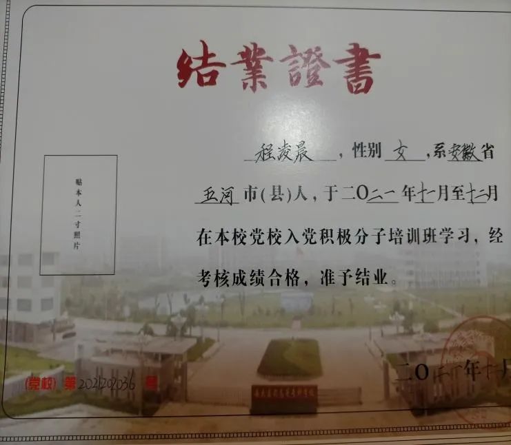 从进入学校以来,他始终坚持以明礼诚信,团结友善,勤俭自强,为衡量道德的标准来要求自己,积极面对困难,参加思想政治学习,用先进的理论武装自己的头脑;在学习专业文化的同时,不断努力提高自身的思想道德素质,紧跟时代发展需要。在校期间积极参加青马培训班和党校培训并顺利结业,在2022年6月成为中共预备党员。