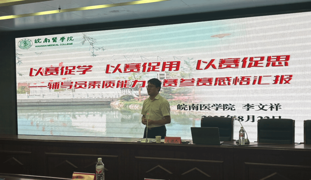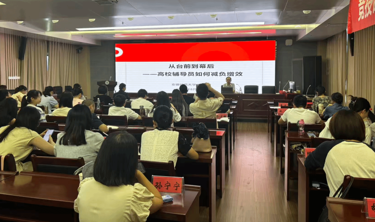 8月22日下午的暑期培训班聚焦辅导员能力提升痛点,邀请校外专家开展两场讲座:安徽师范大学陈勇教授以《从台前到幕后——高校辅导员如何减负增效》为题,剖析辅导员“台前困境”,结合奖学金评定、心理预警等案例,分享流程标准化、学生赋能等减负策略;皖南医学院优秀辅导员李文祥围绕《以赛促学・以赛促用・以赛促思》,结合参赛经历解读大赛各环节重点,分享政策梳理、案例分析等备赛经验,为辅导员备赛与职业发展提供参考。