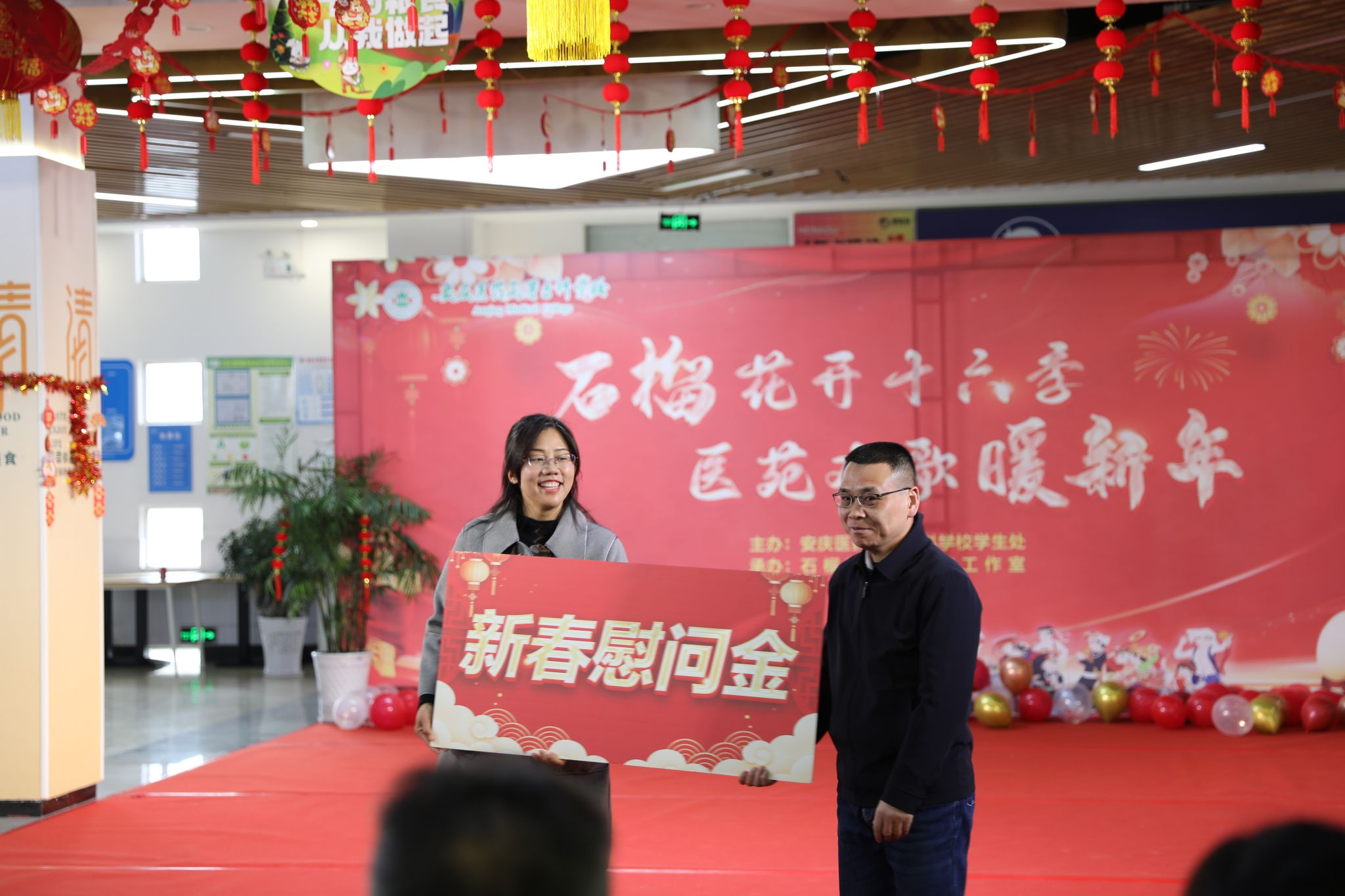 随后,市委统战部副部长,市民族宗教事务局局长余红松上台为中职班师生发放了慰问金,传递了党和政府对教育事业的深切关怀与支持。这份沉甸甸的关怀,让同学们倍感温暖、备受鼓舞,更坚定了他们刻苦钻研医学知识、潜心练就过硬本领、将来投身医学事业、回报社会的坚定决心。