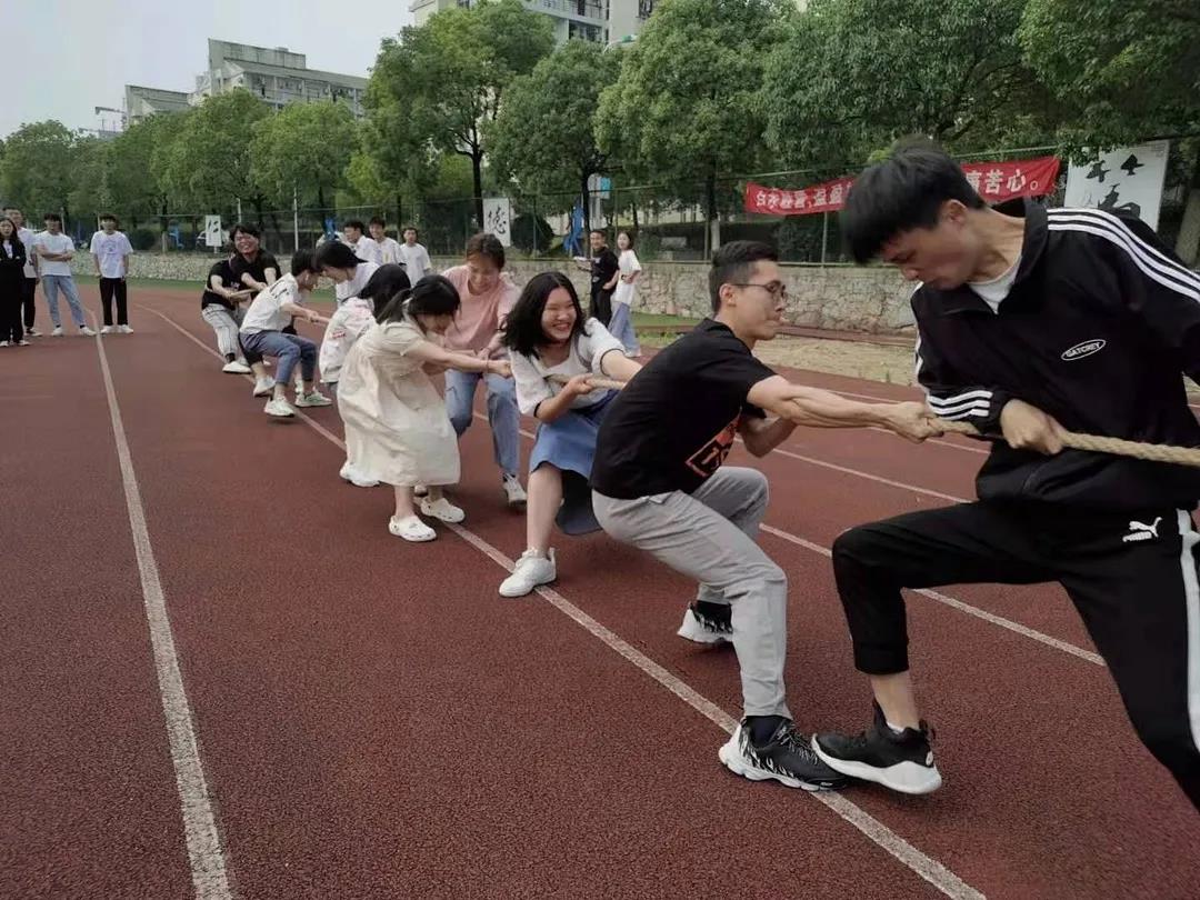 随着裁判员一声哨响,本次比赛正式拉开帷幕。比赛的进行异常激烈,参赛队员一个个精神抖擞,队友们也随着比赛进行加油鼓励,场面十分热闹。加油,加油....,必胜,必胜....,加油声呐喊声此起彼伏,好不热闹。其中最为精彩的是并肩作战比赛项目,这需要一位同学蒙上双眼背着另一位同学通过障碍物到达终点,这个活动充分体现了同学之间的协作能力和默契。还有海底捞月,拔河比赛,水杯运输都是在考验团结协作的能力。尤其是拔河比赛更能凸显出同学们团结一致的精神。整个运动会充满了趣味性,围观的同学不时发出欢快的笑声,同学们将青春的光芒发挥到极致,充分感受到友谊第一,比赛第二的宗旨。