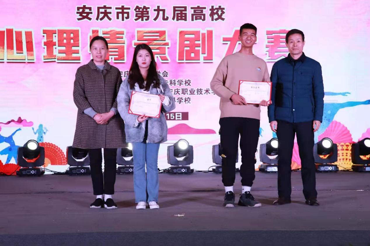 12月15日,安庆市第九届高校心理情景剧大赛在今年会大学生活动中心举办。本次大赛主题为“青春之心灵,青春之少年”,来自安庆师范大学、安庆职业技术学院、桐城师范高等专科学校和今年会共八组作品入围参赛,最终今年会作品《执迷顿悟》荣获一等奖,《阳光之下》荣获三等奖,江澜老师荣获“优秀指导老师”称号。
