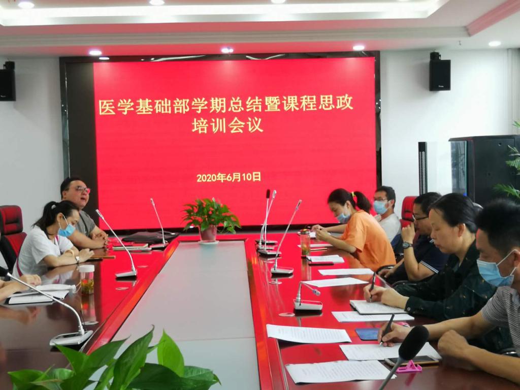 6月10日,医学基础部在图书馆六楼会议室召开学期总结暨课程思政培训会议,系部负责人王江红主持会议,部门全体教师参会。