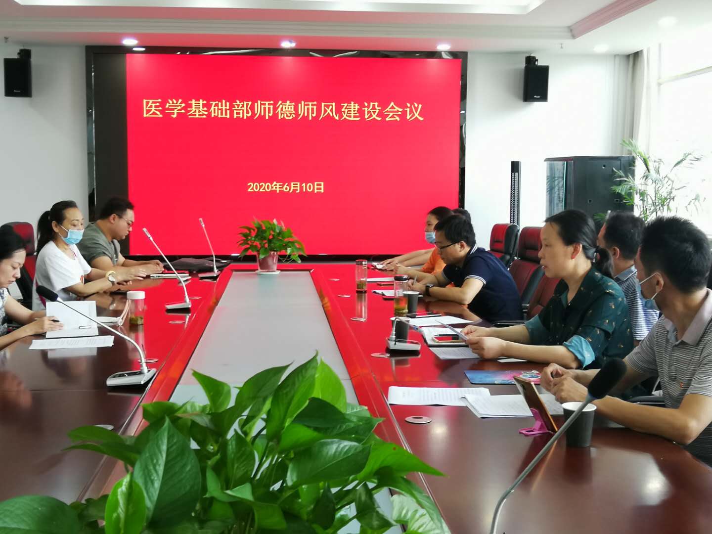6月10日,医学基础部在图书馆六楼会议室召开师德师风建设专题会议,系部负责人王江红主持会议,部门全体教师参会。