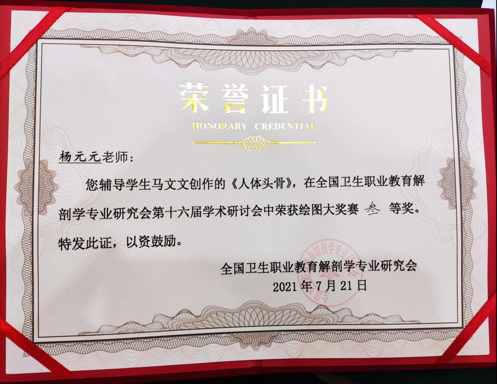 在学校的大力支持下,医学基础部组成了参赛团队参加各项解剖学专业系列大赛。参赛老师、指导老师放弃了休假,克服了重重困难积极备战,最终取得了优异的成绩。获得一等奖1人次;二等奖1人次;三等奖3人次。