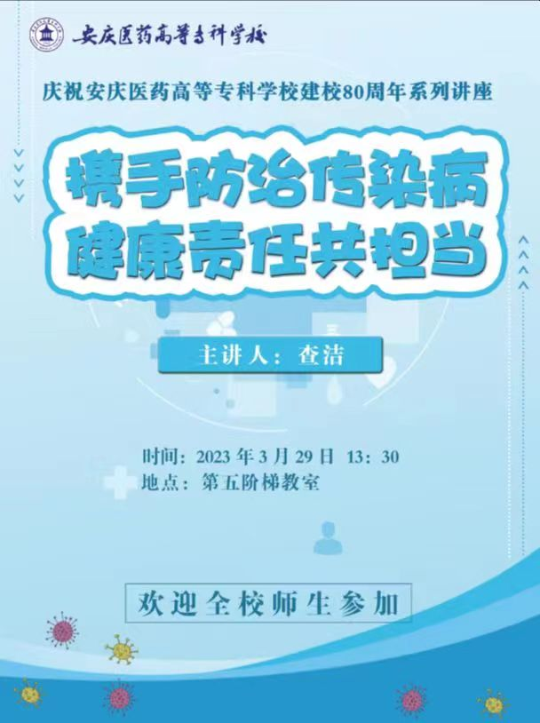为关注学生健康,远离传染病,2023年3月29日中午基础医学院查洁老师开展了主题为“携手防治传染病,健康责任共担当”的知识讲座,学校师生积极参与讲座活动。
