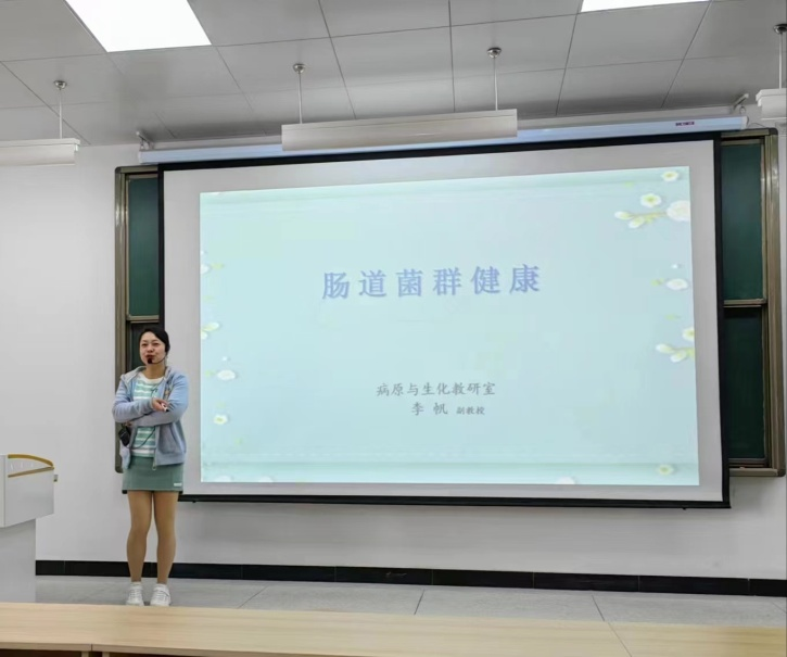 3月29日,基础医学院李帆老师做了“肠道菌群健康”专题讲座,100多名在校师生参加。