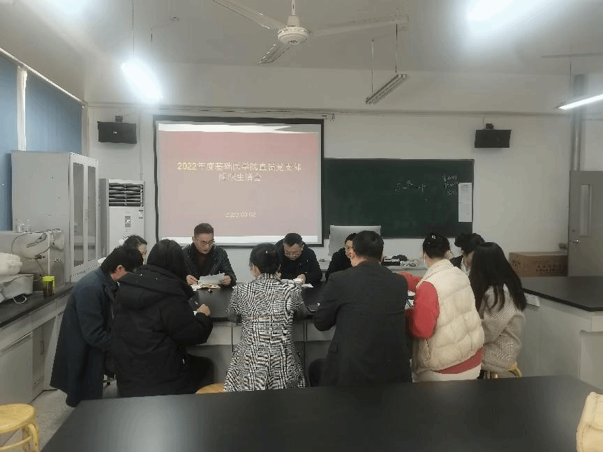 根据中共安庆市委组织部《关于召开 2022 年度基层党组织组织生活会和开展民主评议党员的通知》及学校党委的要求,3月2日中午12:30,基础医学院直属党支部在生化实验室召开了2022年度组织生活会,校党委委员朱三九及全体党员参加,会议由支部副书记杨小四主持。