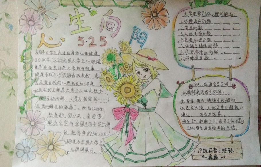 每年的5月25日,是全国大学生心理健康日,“5.25”是“我爱我”的谐音,爱自己才能更好地爱他人。为营造出校园积极、健康、和谐的心理健康教育氛围,引导学生树立正确的心理健康观念,以更积极的心态投入到学习和生活中去,药学系于5月10日组织开展以“投己一份善爱,予心一束阳光”为主题的心理健康教育活动。