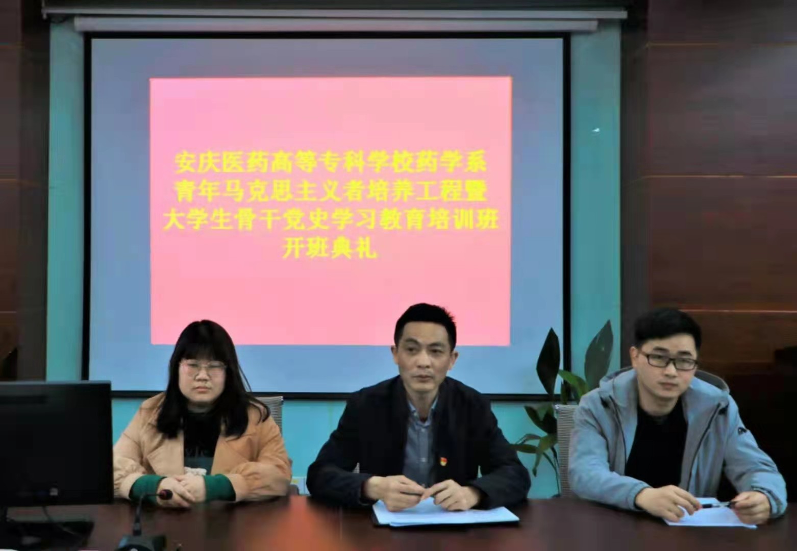 4月16日,为深入学习贯彻习近平新时代中国特色社会主义思想和党的十九大精神,引导广大团员青年树立正确价值观念,不断提高药学系大学生骨干的思想政治素质。药学系于实训楼一楼会议室开展了“药学系青年马克思主义者培养工程暨大学生骨干党史学习教育培训班”开班仪式。出席仪式的有药学系党总支书记刘毅、陈凯老师、胡维维老师及本次青马班学员。