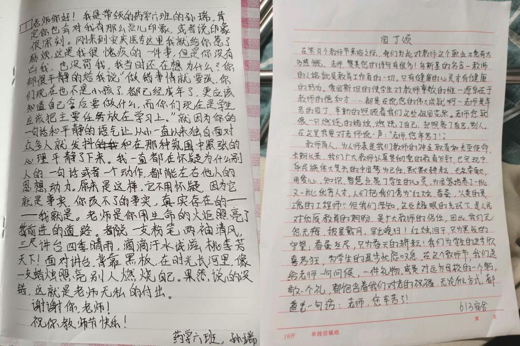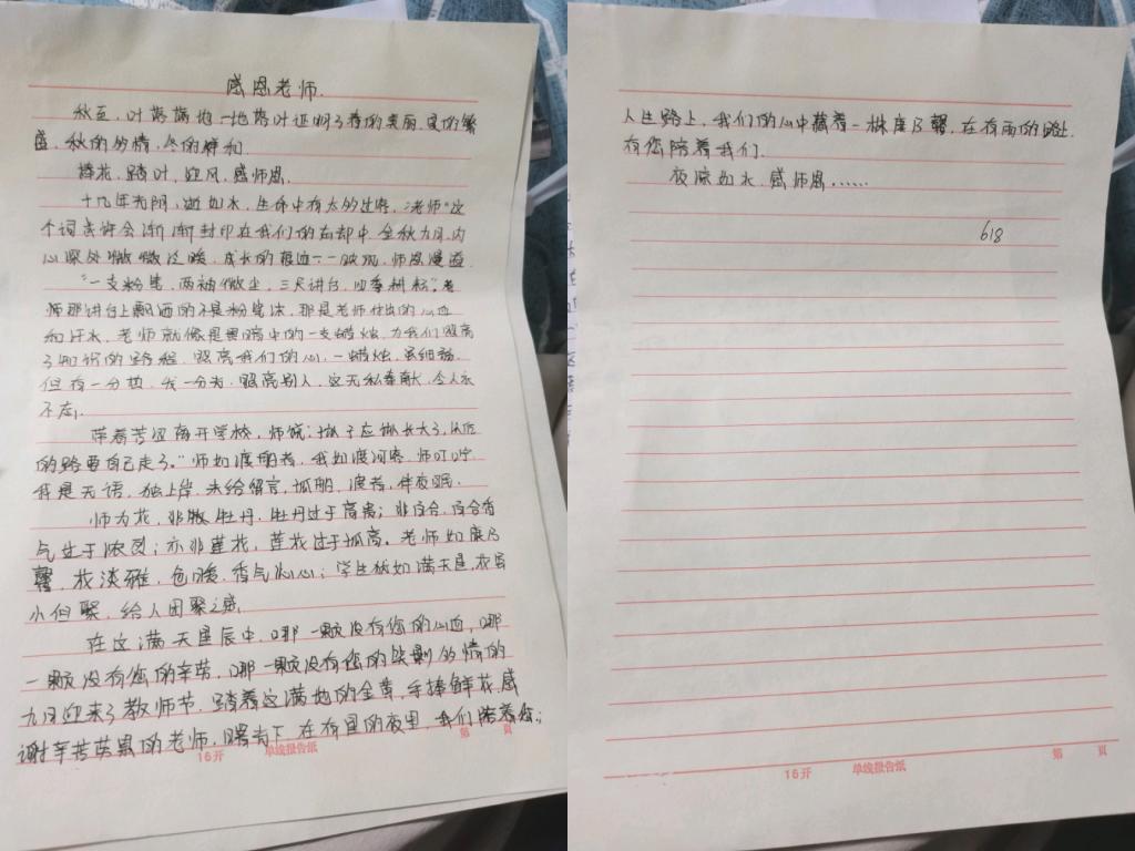 一份份感恩信,虽有着各不相同的内容,但却表达了对老师的最真挚的问候,形成一首教师节温馨和谐的颂歌。(撰稿人:耿恩爱;供图人:单佳;审批人:陈玉,胡维维)