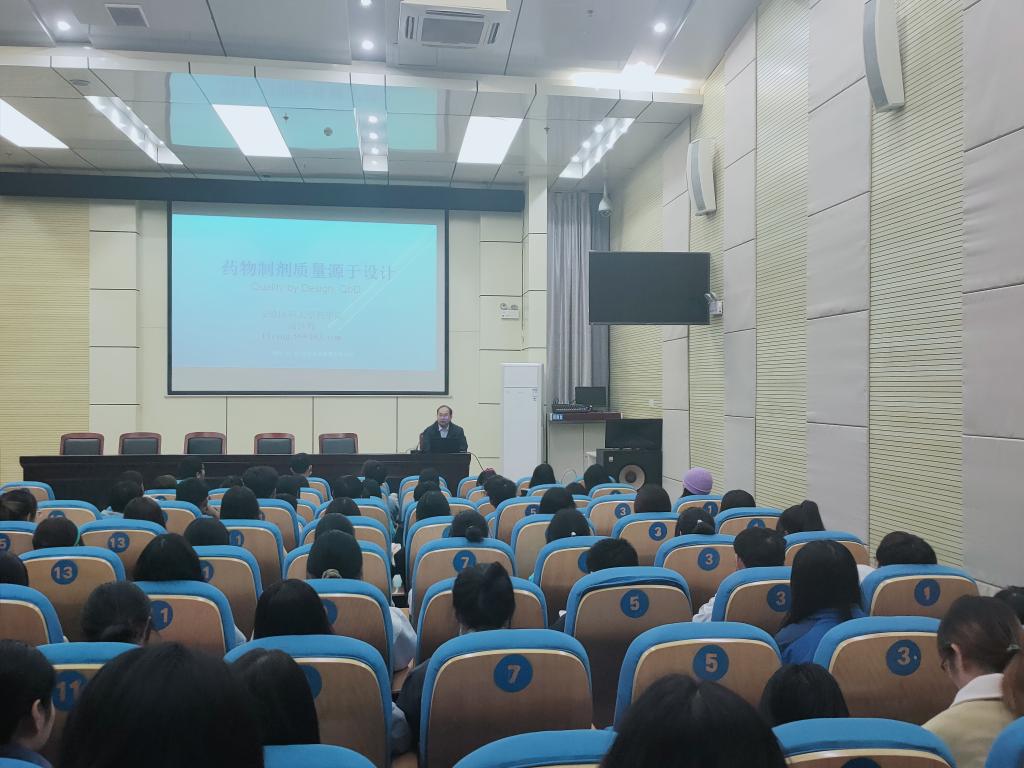 汤博士从制剂质量取决于设计(QBD)的起源引入,介绍了实施QBD的步骤,并以多潘立酮片为例,详细介绍如何通过实验设计来确定原料属性和溶解度及溶出度的关系。QBD的理念打破了“药品质量是通过检验来控制的”和“药品质量是通过生产过程控制来实现的”这样传统的观念,给全体师生带来一场头脑风暴。
