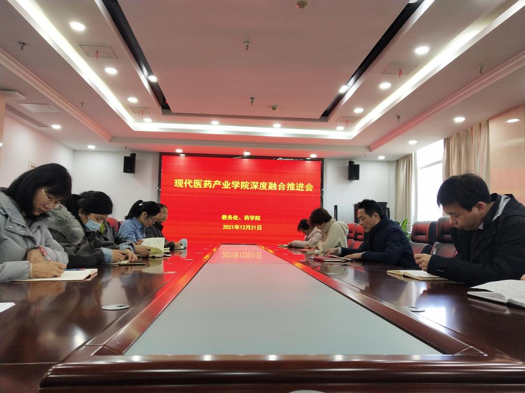 12月21日上午,现代医药产业学院深度融合推进会在图书馆六楼会议室召开,药学院党总支书记、院长刘毅,教务处处长汪瑞出席会议,学生处、科技处、发展规划处负责人以及药学院部分骨干教师、专业负责人参会,会议由刘毅主持。