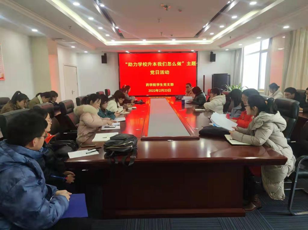 2月23日,药学院学生党支部开展主题党日活动,全体师生党员围绕“助力学校发展我们怎么做”进行大讨论,进一步凝聚了共识。
