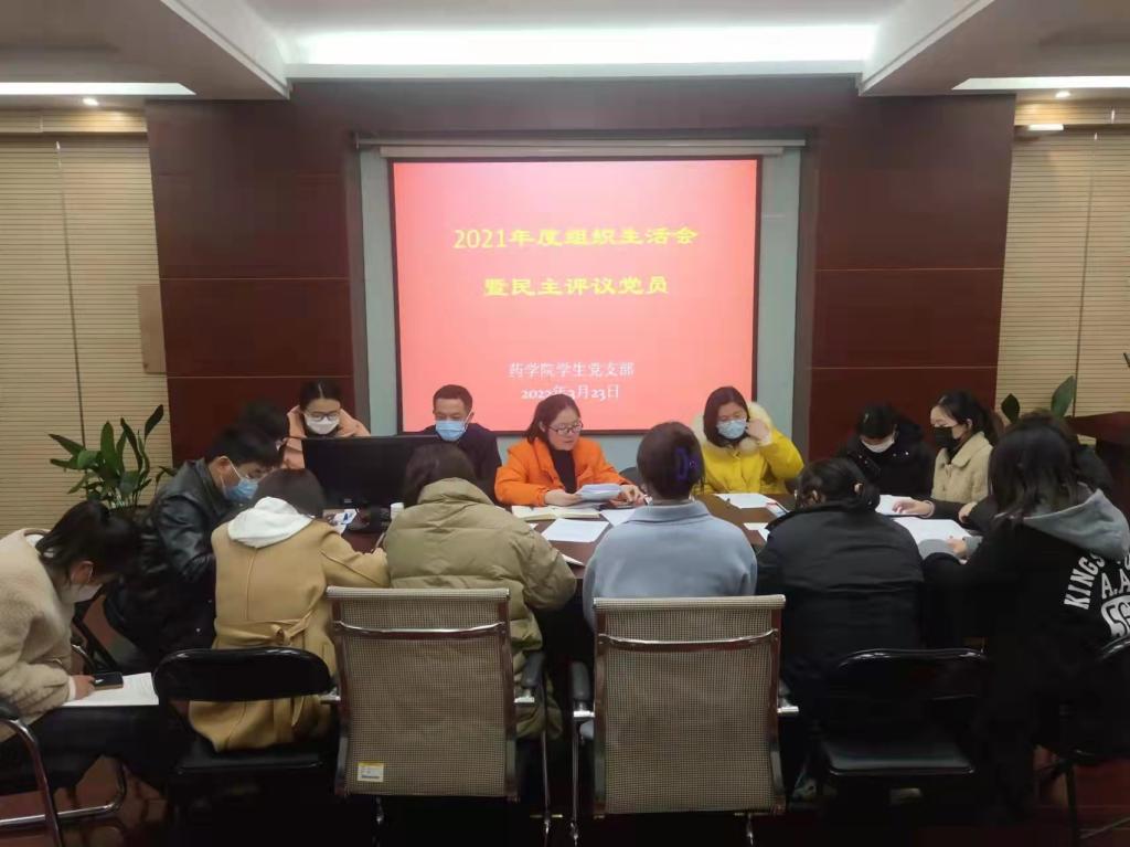 根据学校党委《关于召开2021年度基层党组织组织生活会和开展民主评议党员的通知》要求, 3月23日,药学院学生党支部在药学院实训楼一楼召开2021年度组织生活会和民主评议党员大会。会议由学生党支部书记周兰主持,校党委委员、药学院党总支书记、院长刘毅出席会议进行指导。