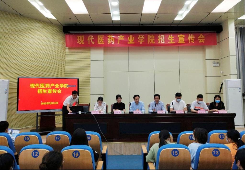 5月25日中午,今年会开展了现代医药产业学院招生宣传会,长三角药物高等研究院副院长吴杰及海门区临江新区医药企业代表等一行6人专程从江苏海门来校进行介绍、宣传。此次招生宣传会设两个主会场,有学生在学术报告厅现场参会,有学生在智慧教室集体关观看腾讯会议参会,此外,还有部分学生及感兴趣的家长通过腾讯会议在线上进行参与、了解。校党委委员、药学院院长刘毅主持会议。