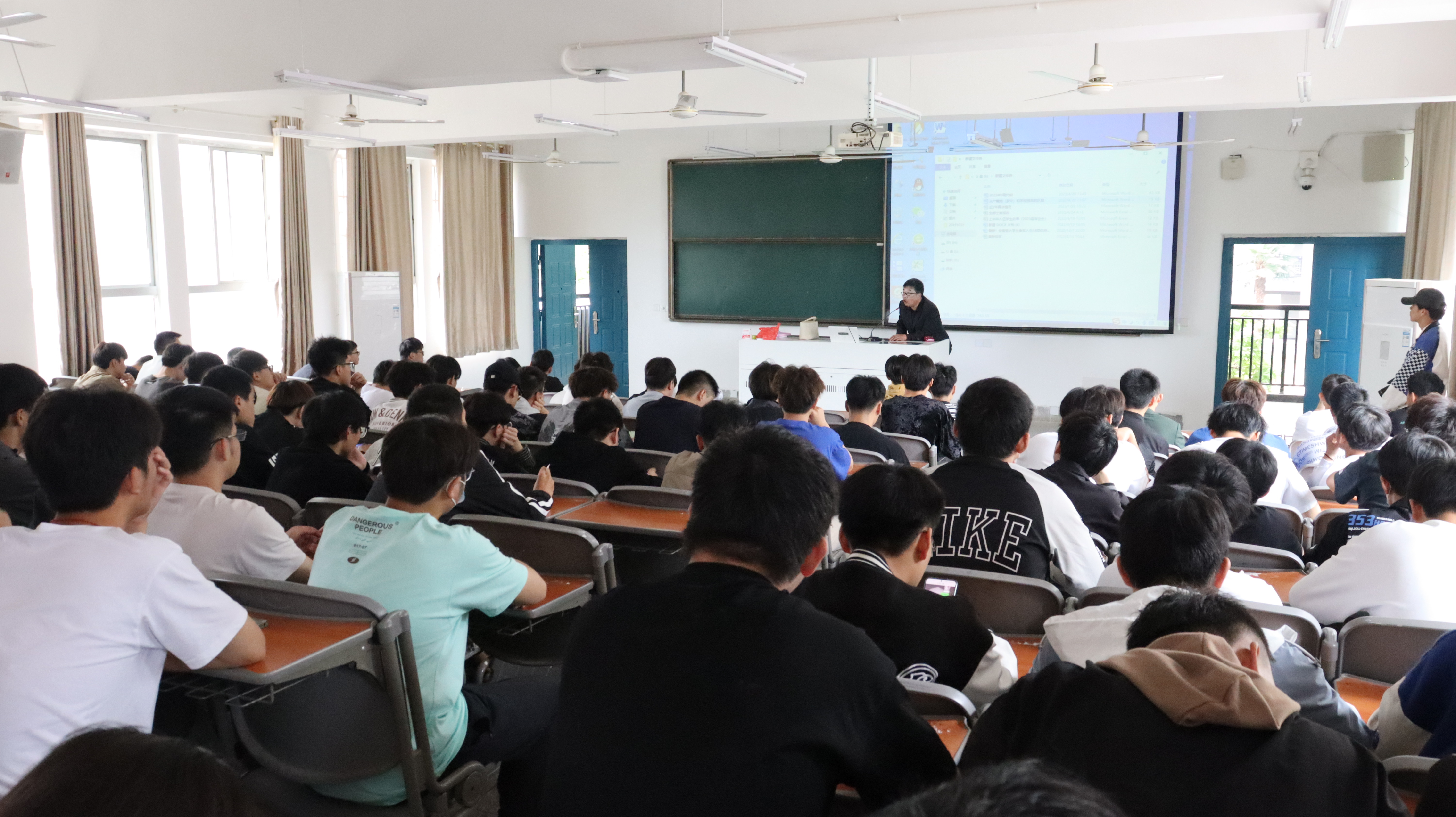 黄建斌围绕应征入伍条件、入伍流程、大学生参军优惠政策三个方面进行具体阐述,详细说明了大学生参军的年龄、身高、体重、视力等身体条件要求,入伍后的优先优待、选拔培养、退役就业、复学升学等国家政策,让同学全面了解到参军入伍的要求及流程,并就目前今年会应征入伍情况、优秀入伍同学事迹做了全面介绍。