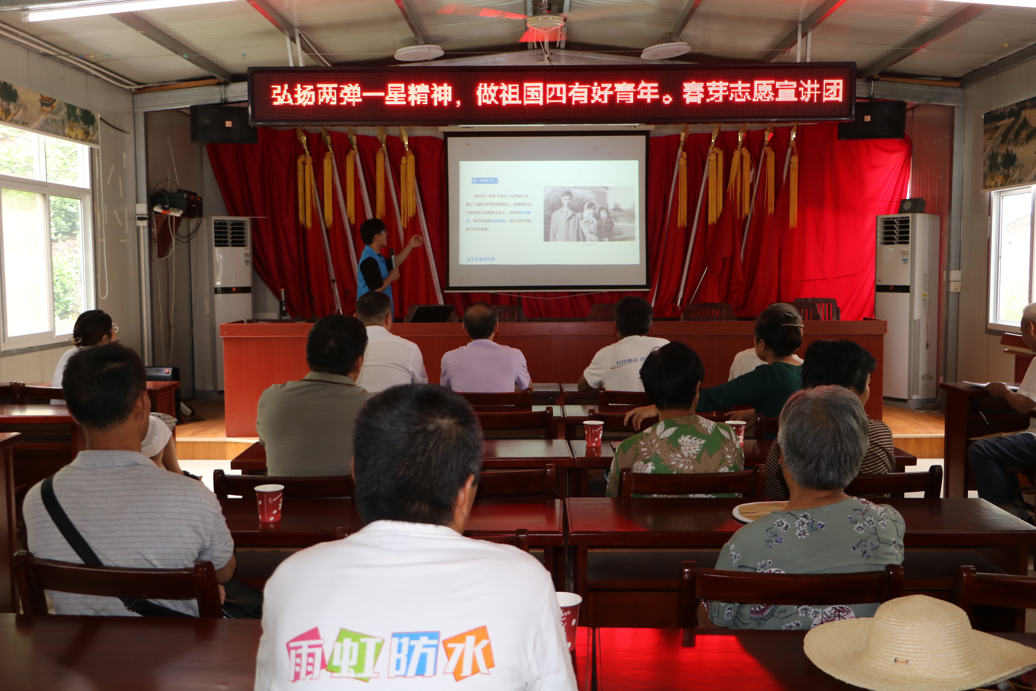 今年会官网“两弹一星”精神春芽志愿宣讲团以“弘扬两弹一星精神、做祖国四有好青年”为主题,把爱国与奉献精神宣扬深入中小学与村落,以核武器发展、邓稼先郭永怀事迹、青春奉献等为落脚点,做好现场宣讲,再现“两弹一星”崇高精神。通过回顾一批批年轻人在党的号召下为祖国与人民奋斗终身的伟大情怀,使人热血沸腾的爱国主义火种在学生的心中点燃!在启田村、黄埔村等地进行宣讲时,大学生与当地村民边宣讲边互动,听村民们讲起过去的故事和红色的年代,村民与宣讲团志愿者互相交流、互相学习,提高了本次宣讲的有效性。