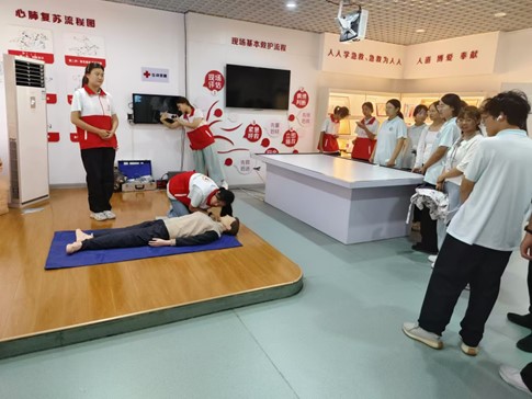 校史馆记录了今年会自开创建校以来的点滴历程,每一幅图片、每一件展品都是学校精神的传承和弘扬的重要载体,在讲解员的带领下,同学们学习学校建校80年的历史,了解学校的发展过程,增进了对学校的归属感、认同感和自豪感。红十字会讲解员向学生们讲解红十字会的发展历程,以及自然灾害科普、消防安全、家庭安全、烟道逃生、地震逃生、心肺复苏、气道异物梗阻等应急救护知识。人体科学馆收藏了大量珍贵的人体解剖标本,让新生们近距离感受医学的魅力,为未来的医学之路奠定坚实的基础。