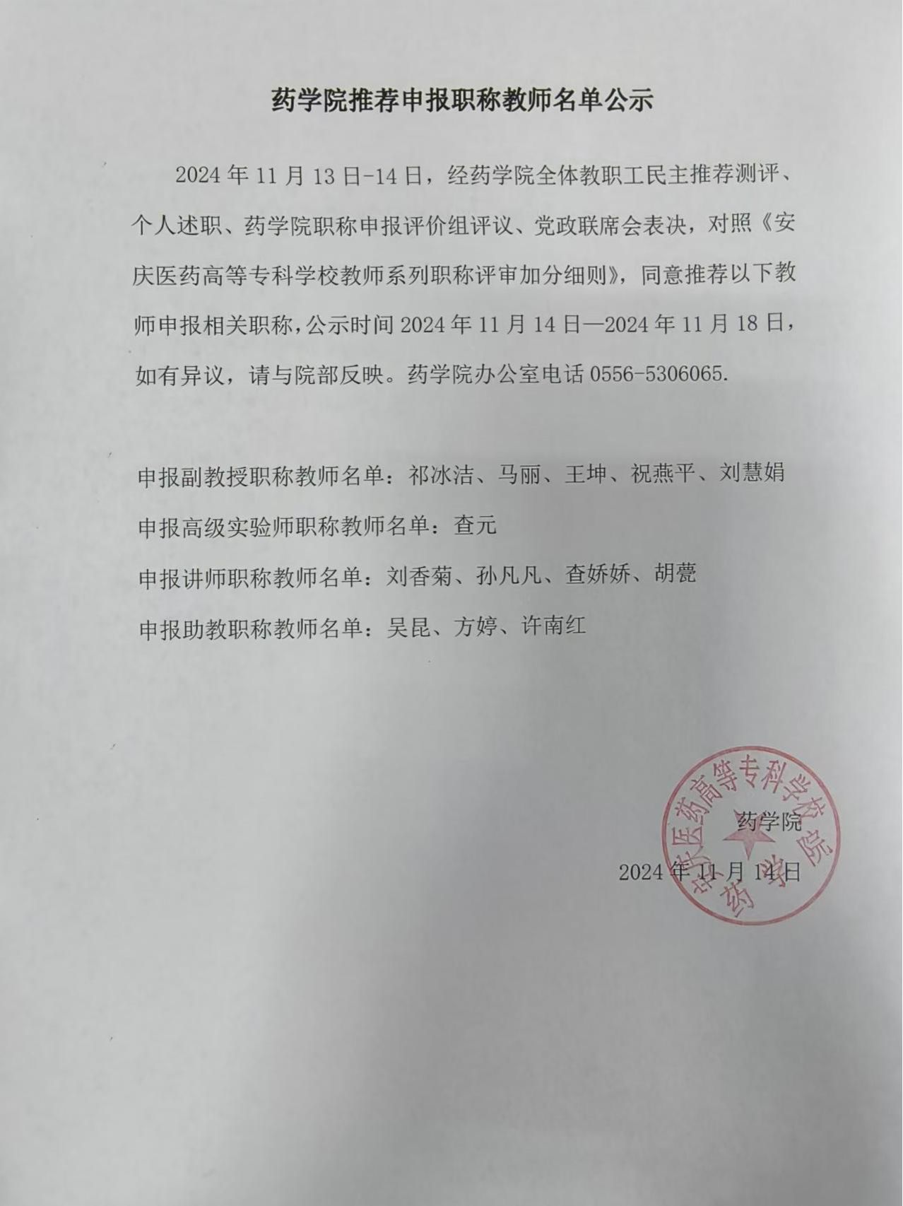 2023-2024学年药学院校级奖学金及先进个人初审名单公示