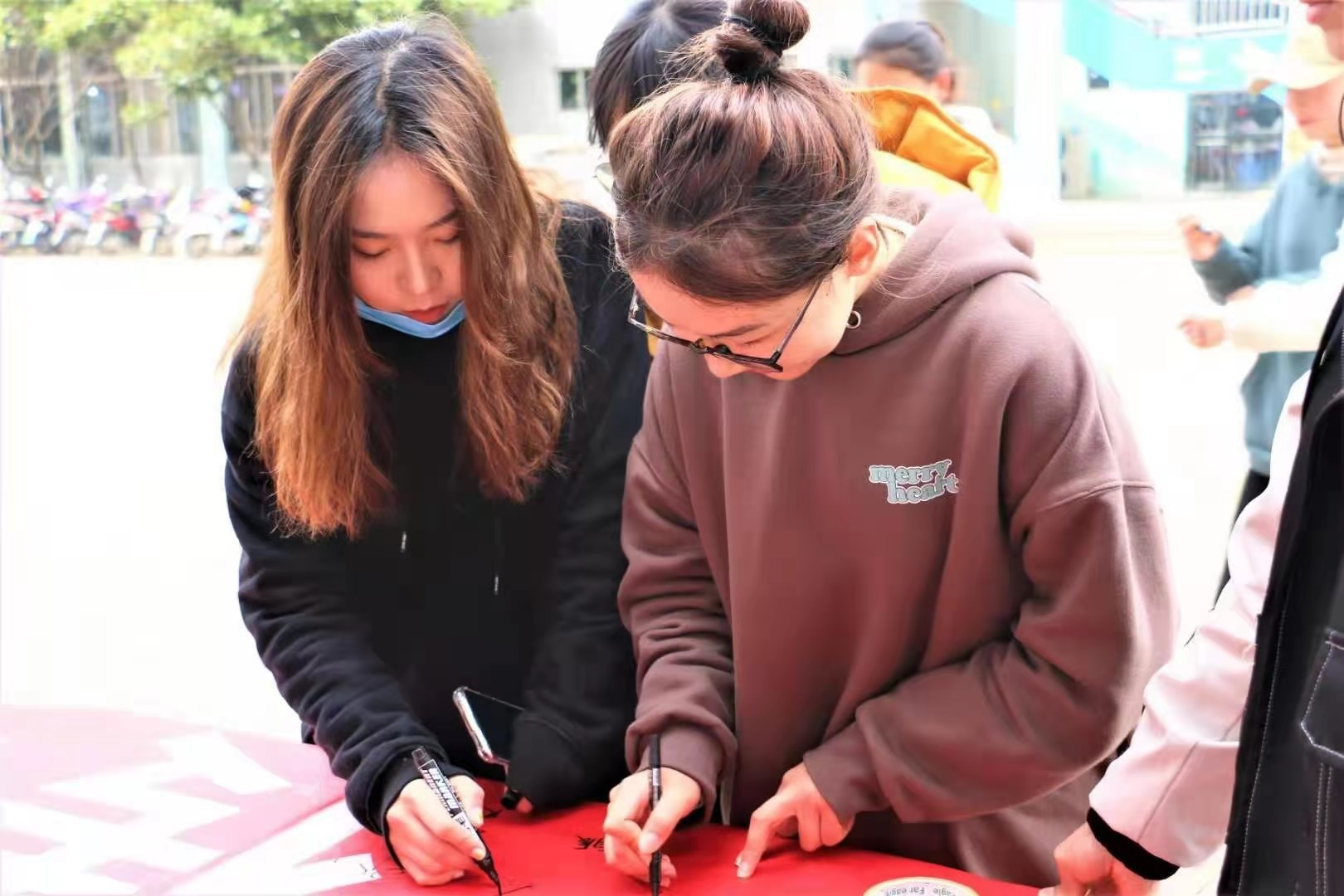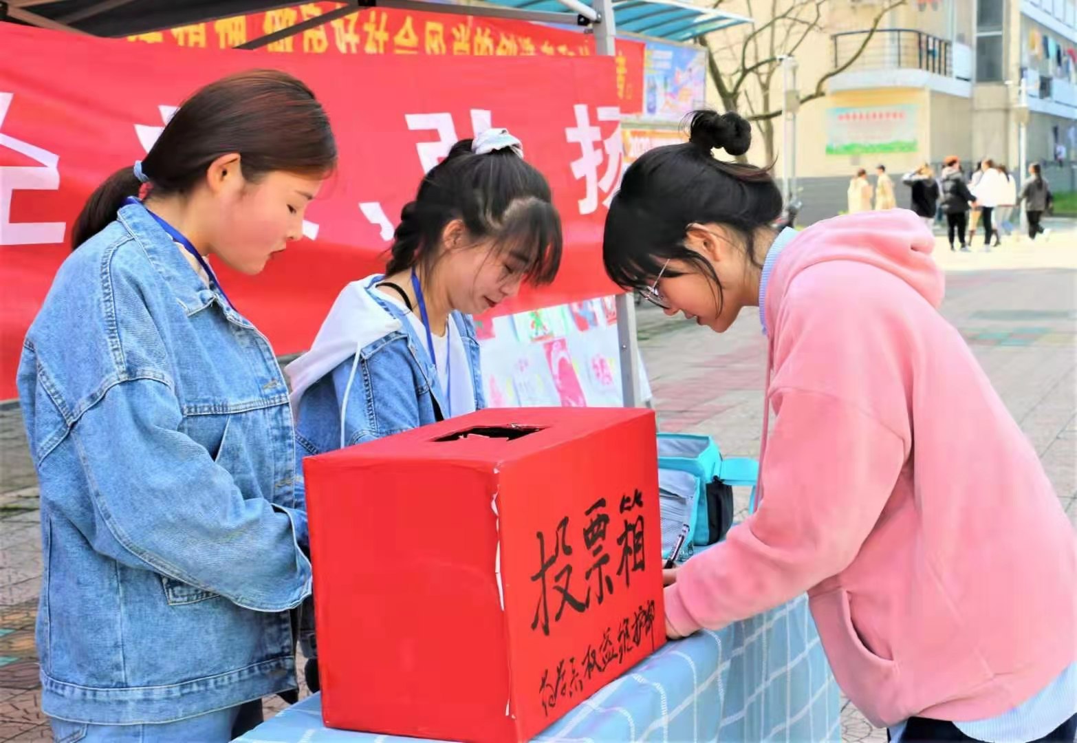 活动前期,通过在校园内文化栏张贴海报、悬挂横幅、班级内发放传单、广播通知等形式进行宣传,营造了浓厚的“学雷锋”氛围。活动一经开始,现场气氛热烈,来来往往的同学们驻足观望,被海报新颖的主题和美丽的图画所吸引,大家既在“传承红色经典,弘扬雷锋精神”为主题的海报画展前为自己最青睐的画作投票,又在“弘扬雷锋精神,深化文明实践”的宣传横幅上签名,并纷纷表示将以实际行动践行文明实践,与“雷锋”共同前行。