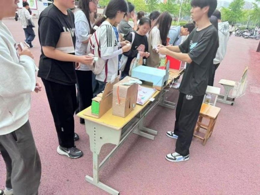 同学们化身"环保设计师",把废塑料重塑为月球装置,使快递箱变身为萌宠座椅,将旧纸箱升级为智能分类垃圾桶。这场"变废为宝"创意活动让环保实践融入生活场景,在提升实践能力的同时,为校园生活注入了绿色文明可持续的环保理念。参赛作品在学校食堂广场前展示,吸引了众多师生驻足观赏并纷纷参与线下投票。