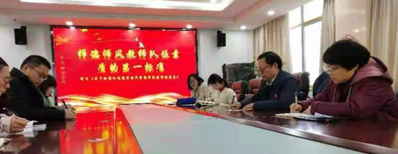 12月9日中午,教工党支部在图书馆六楼会议室开展 “支部书记讲党课”活动。支部书记任丽英同志围绕“师德师风教师队伍素质的第一标准”主题,带领教工支部全体党员学习《关于加强和改进新时代师德师风建设的意见》的专题党课。校党委书记杨金奎作为普通党员出席活动。