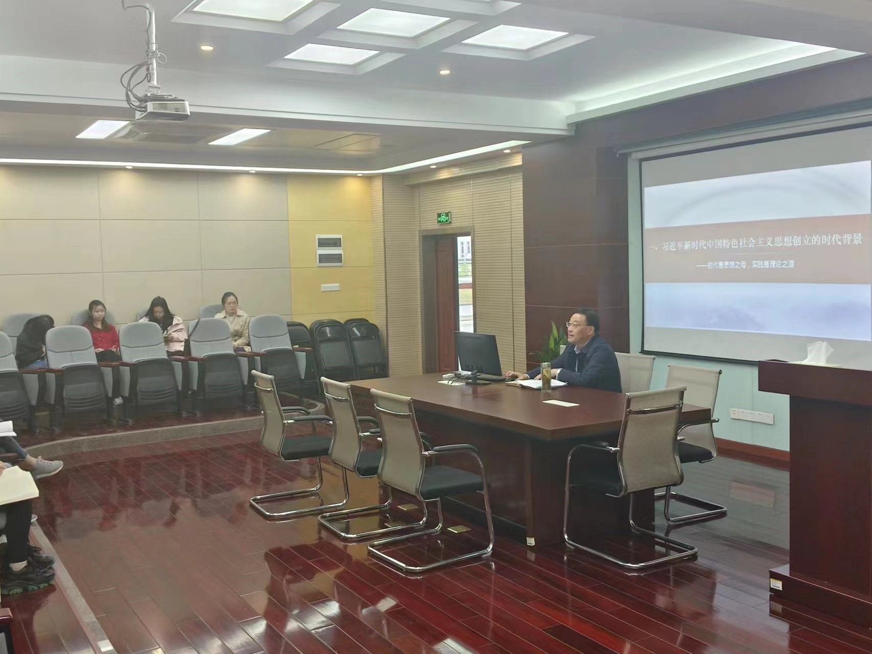 朱庆丰重点围绕习近平新时代中国特色社会主义思想创立的时代背景、科学体系、历史地位等方面进行了系统解读和深入阐释,并且结合工作实际分享了自己的学习感触。