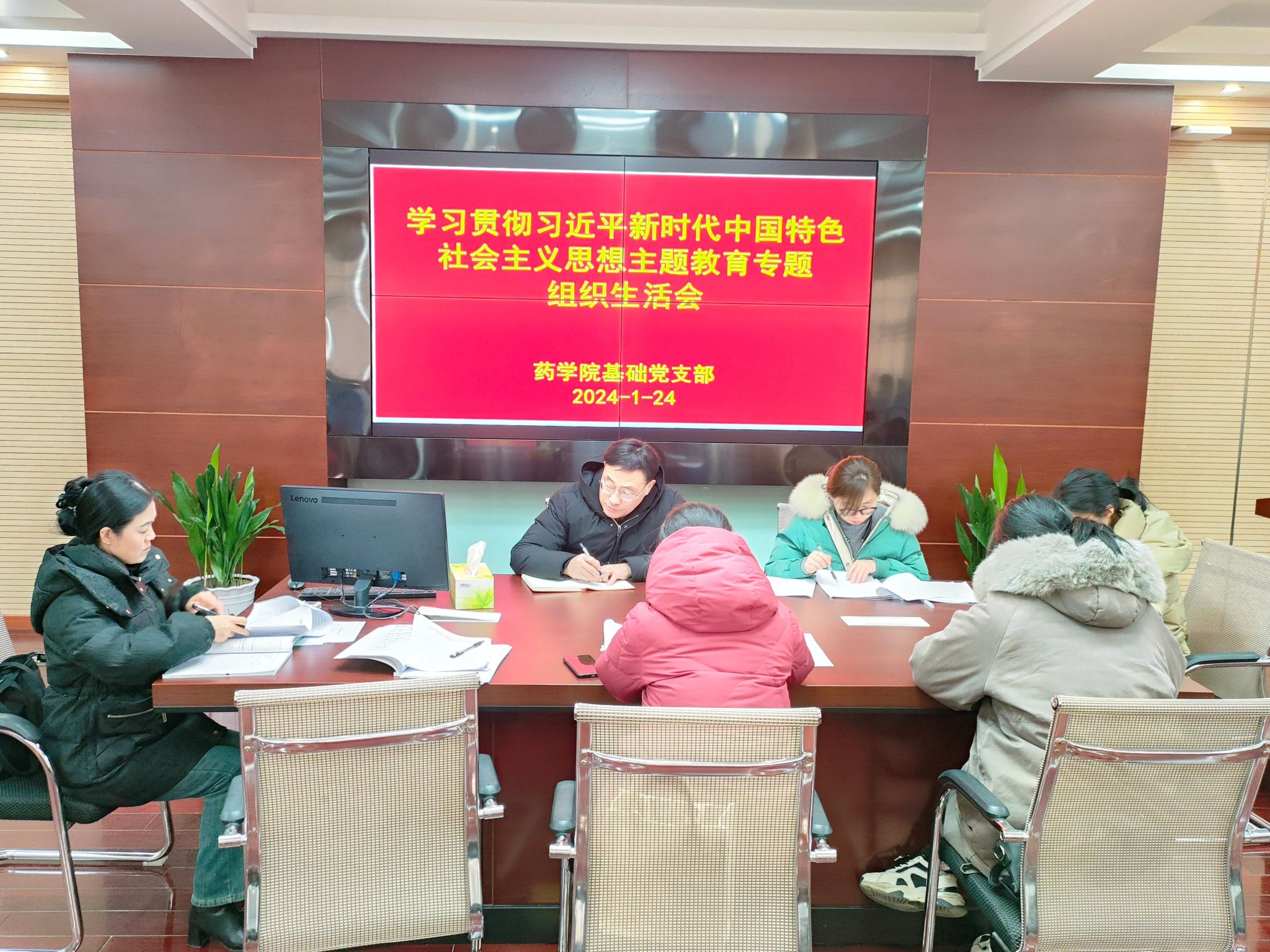 为认真落实学校《关于召开学习贯彻习近平新时代中国特色社会主义思想主题教育专题组织生活会和开展民主评议党员的通知》(庆医专党发[2024]2号)要求,2024年1月24日。药学院基础党支部在药学院实训楼1楼会议室召开学习贯彻习近平新时代中国特色社会主义思想主题教育专题组织生活会暨民主评议党员大会。校长朱庆丰出席会议进行指导,会议由基础党支部书记祝凌丽主持,支部全体党员参加会议。