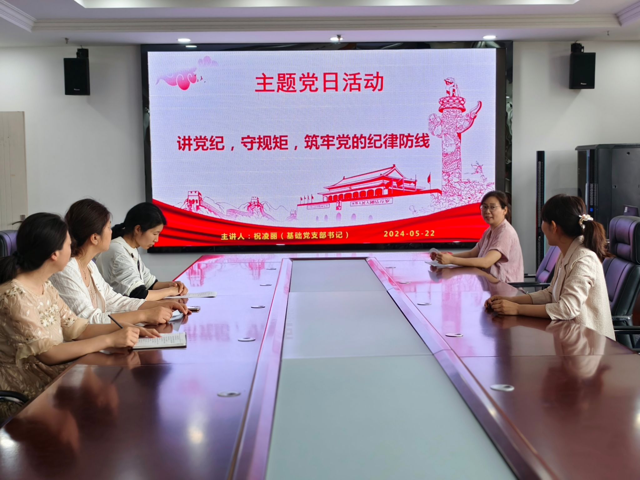 基础党支部书记祝凌丽 以《讲党纪,守规矩,筑牢党的纪律防线》为题,给全体党员讲授党课,同时结合新时代党的建设总要求,强调党纪学习的重要性和必然要求。并对新修订的《中国共产党纪律处分条例》相关内容进行全面解读。