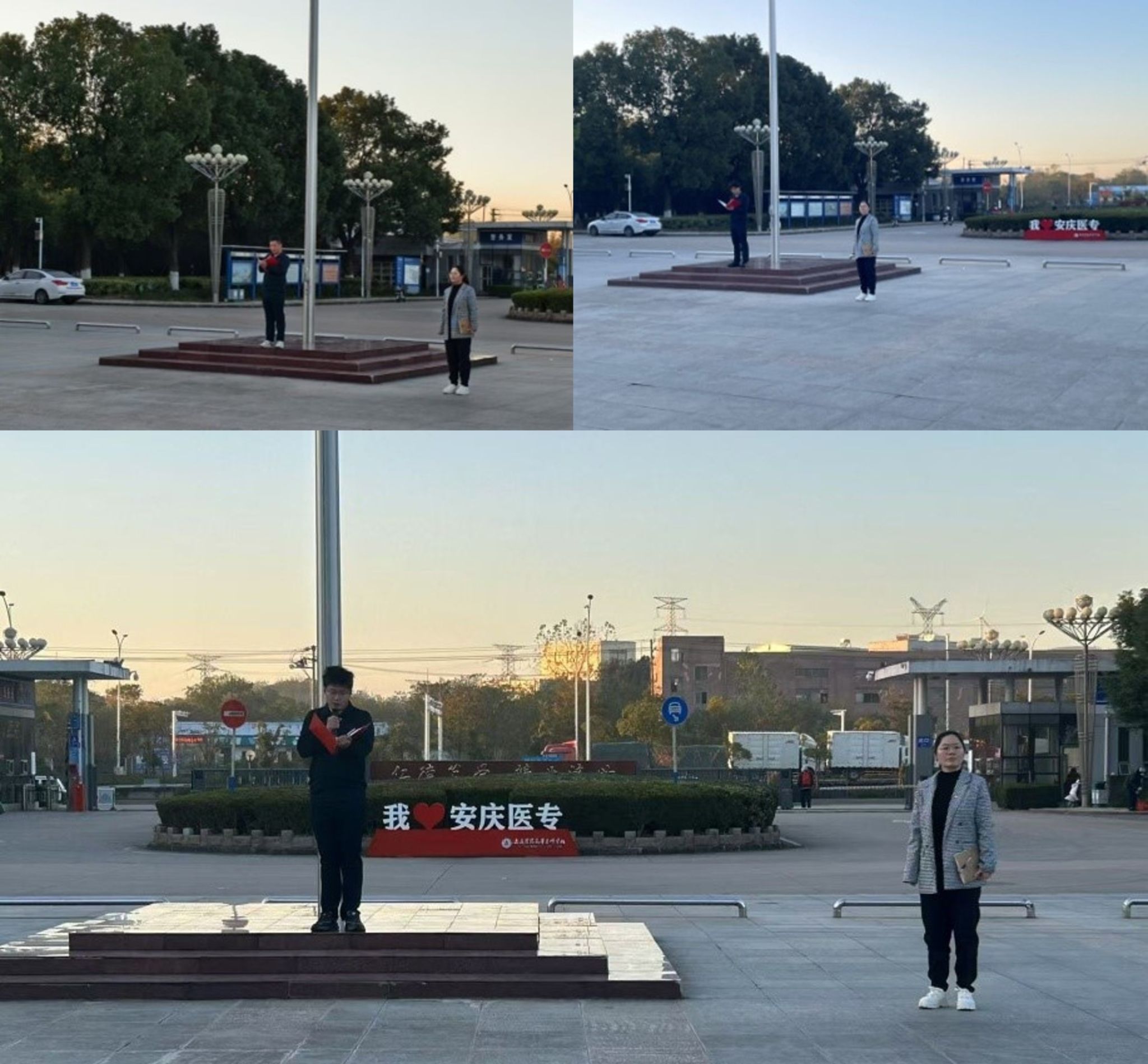 国旗护卫队踏着晨光进场,伴随着激昂的国歌声升起国旗。三位退役军人逐一上场开展宣讲,张洁结合6个鲜活的案例,给同学们普及了国家安全的相关知识;刘明扬围绕“强国必须强军,军强才能国安”的主题,发出了“少年自强,国之所望,征兵固防,安国兴邦。戎装于身保国泰民安,钢枪在握铸华夏未来”的入伍号召;韩义带着我们回顾历史,穿梭峥嵘岁月,明确“尊严只在剑锋之上,真理只在大炮射程之内”,指出在校大学生要自觉增强国防意识,在日常生活中,爱护国旗、国徽,尊重军人,传承和弘扬爱国主义精神。