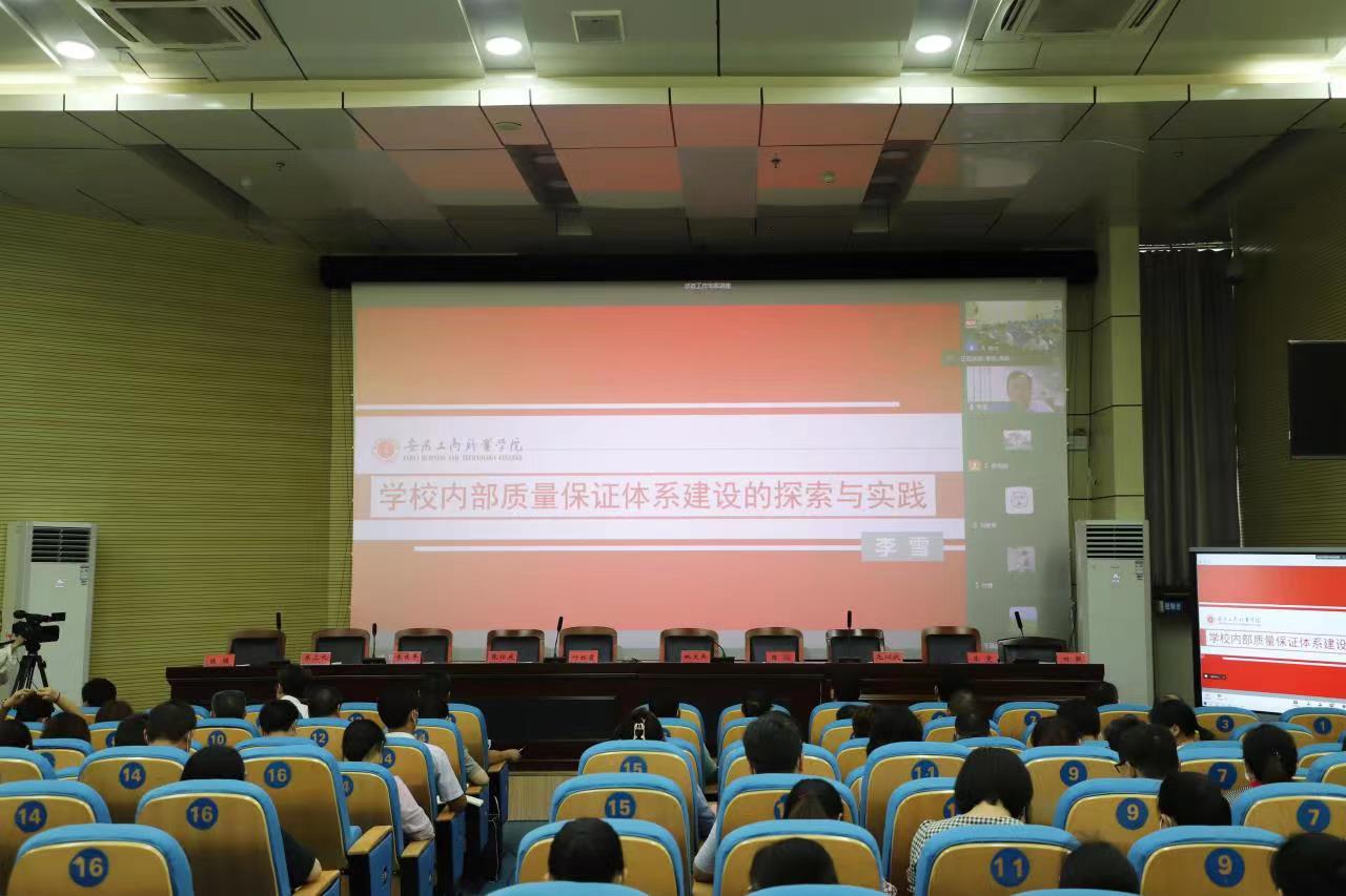 李雪教授以《学校内部质量保证体系建设的探索与实践》为题,从国家顶层设计、省级特色做法和学校诊改探索三个方面对教育部、省教育厅有关文件的精神内涵进行了深入解读,围绕省级特色做法中“一个制度”、“二个方案”、“三个维度”、“四个环节”和“五个度”进行了详细讲解,最后结合安徽工商职业学院内部质量保证体系诊断与改进工作实施与复核情况,从诊改制度建设与运行实操和诊改成效等方面谈了自己的经验和见解。