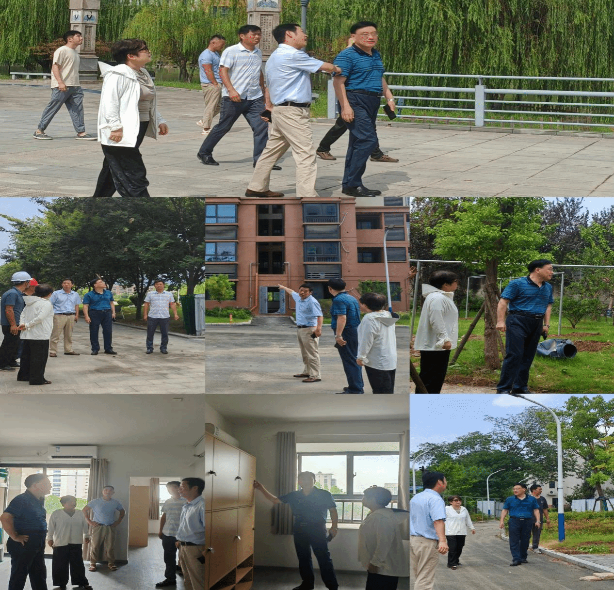 朱庆丰、毛以成一行深入查看了新学生公寓设备设施安装、洗浴热水改造、围墙改造、图书馆外墙修复、8栋学生宿舍维修出新等暑期项目施工现场,听取了施工单位施工进展和安全生产情况汇报,对总务后勤等工作人员在暑期战高温、抓进度、把质量、保安全的工作态度给予肯定。
