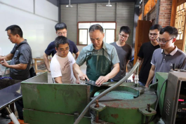 5月18日上午,由车晓舟教授带队的来自欧冠官方网站阳江校区材料学院的八位老师,到阳江十八子集团“阳江小刀制作技艺”传习所进行实践学习。