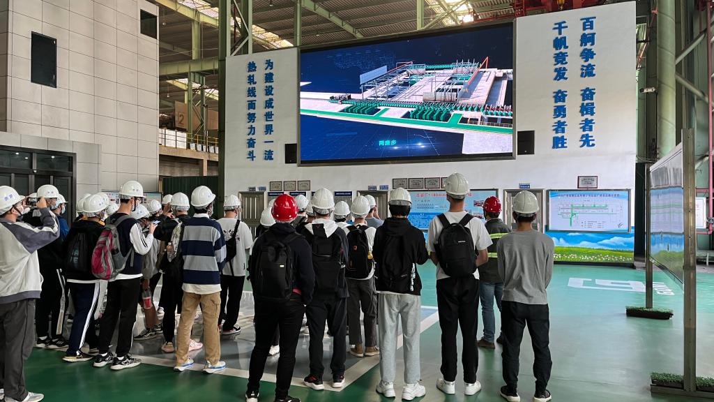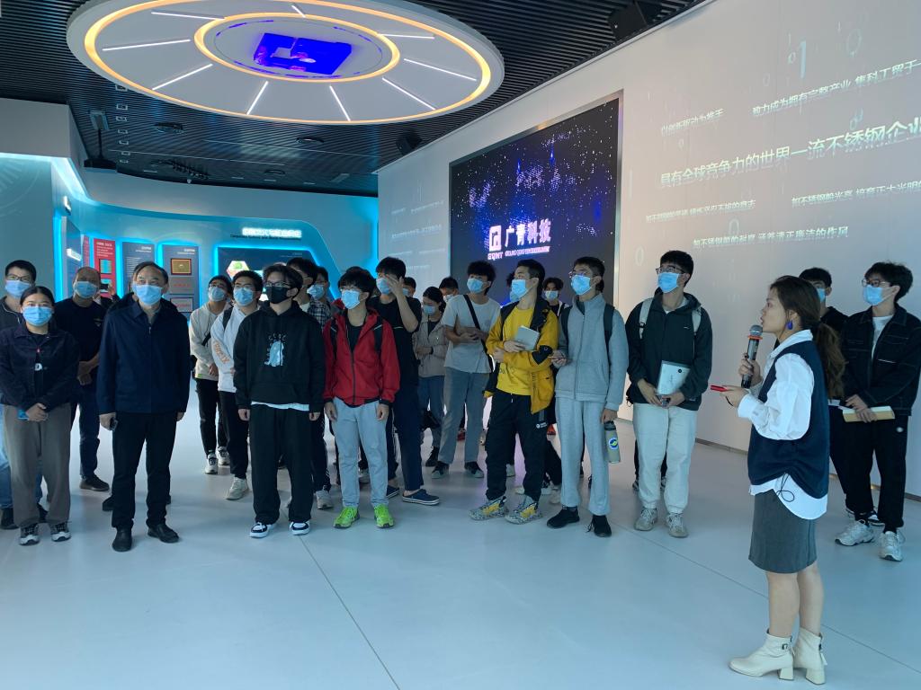 12月8日,材料学院师生赴广东广青金属科技有限公司(以下简称广青科技)参观学习。广青科技是由全国500强广东省属国有企业广东省广新控股集团和世界500强民营企业青山控股集团共同投资成立的大型不锈钢生产企业,公司位于广东省阳江高新技术产业开发区港口工业园,总投资约55亿元,年产值超过200亿元,现有员工4300多名,位列2020年广东省企业500强第99位、制造业100强第37位,入选广东省创新企业100强,陆续获评广东省大型骨干企业、高新技术企业、广东省文明单位、全国模范职工之家、全国首批绿色工厂、全国五一劳动奖状等多项荣誉称号。师生们参观了广青科技成果展厅和热轧生产线,看到一块块烧的通红的钢坯经过加热-除磷-粗轧-精轧-控制冷却-自动卷绕工艺流程变成一卷卷钢带,同学们发出一声声惊叹,对金属材料专业有了第一次感性认识。