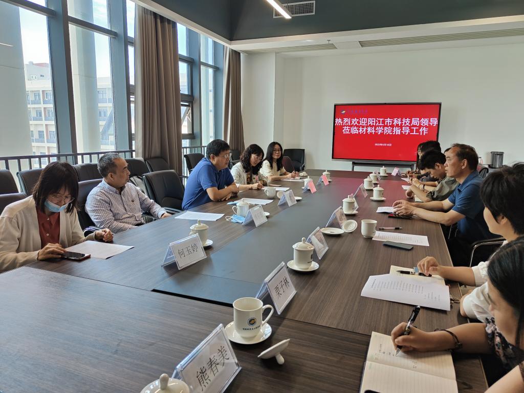 2022年5月18日,阳江市科技局高世一局长带队到欧冠官方网站阳江校区材料学院调研。