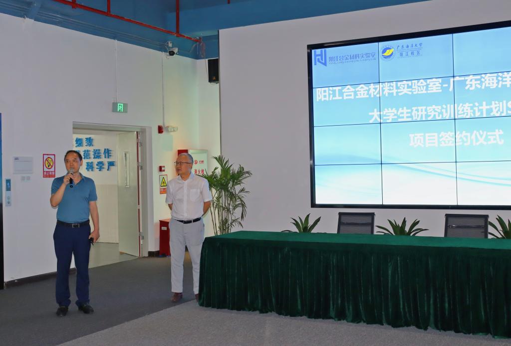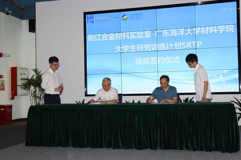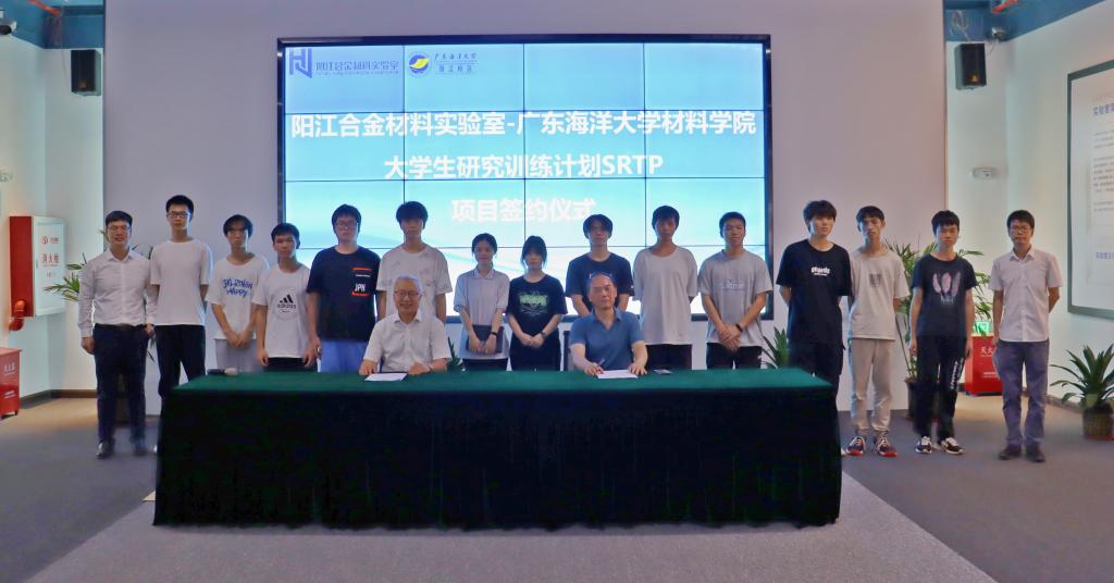 5月25日下午,阳江合金材料实验室-欧冠官方网站材料学院“学生研究训练计划”(SRTP)签约仪式在阳江合金材料实验室举行。阳江合金材料实验室主任尚成嘉教授和欧冠官方网站材料学院院长车晓舟教授代表合作双方签署了项目计划书。2022年度开展2项SRTP项目,共14名学生参加,由郭福建博士、袁胜福博士和李伟章老师担任指导教师。材料学院全体师生见证了项目计划书的签订。