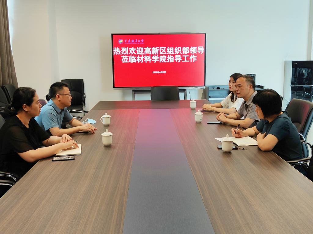 2022年6月9日,阳江市高新技术开发区组织部郑敢记副部长和人才室主任吴瑞婷到欧冠官方网站阳江校区材料学院调研。高新区组织部领导和材料学院就人才培养、校企合作、学生就业等问题进行了深入探讨,并就合作模式、具体工作安排达成了共识。